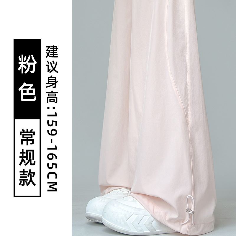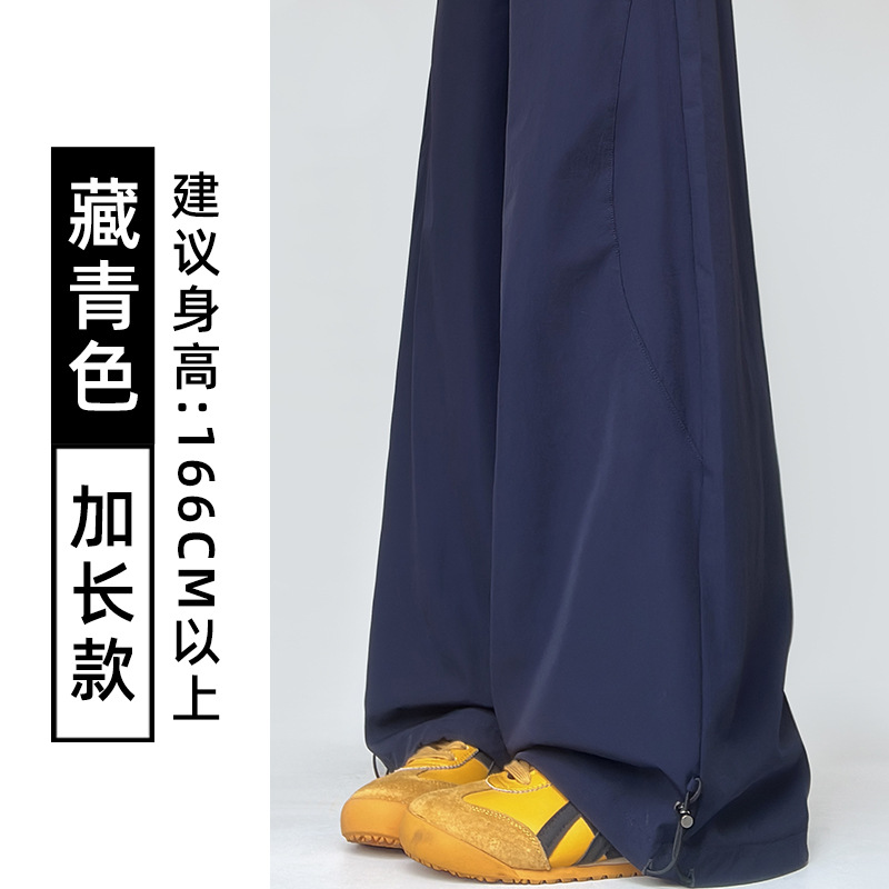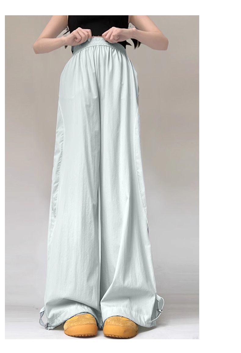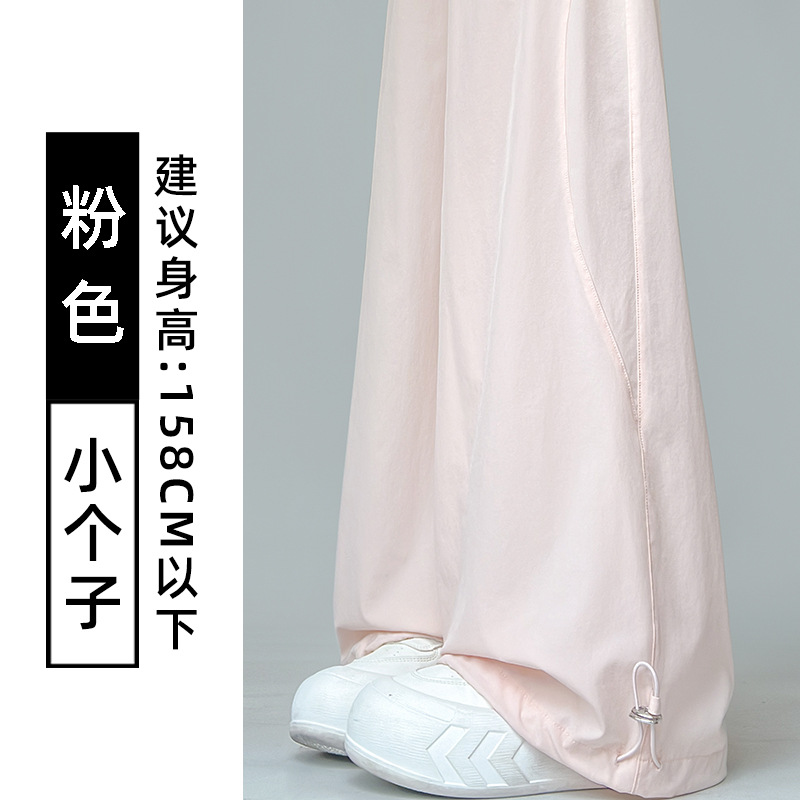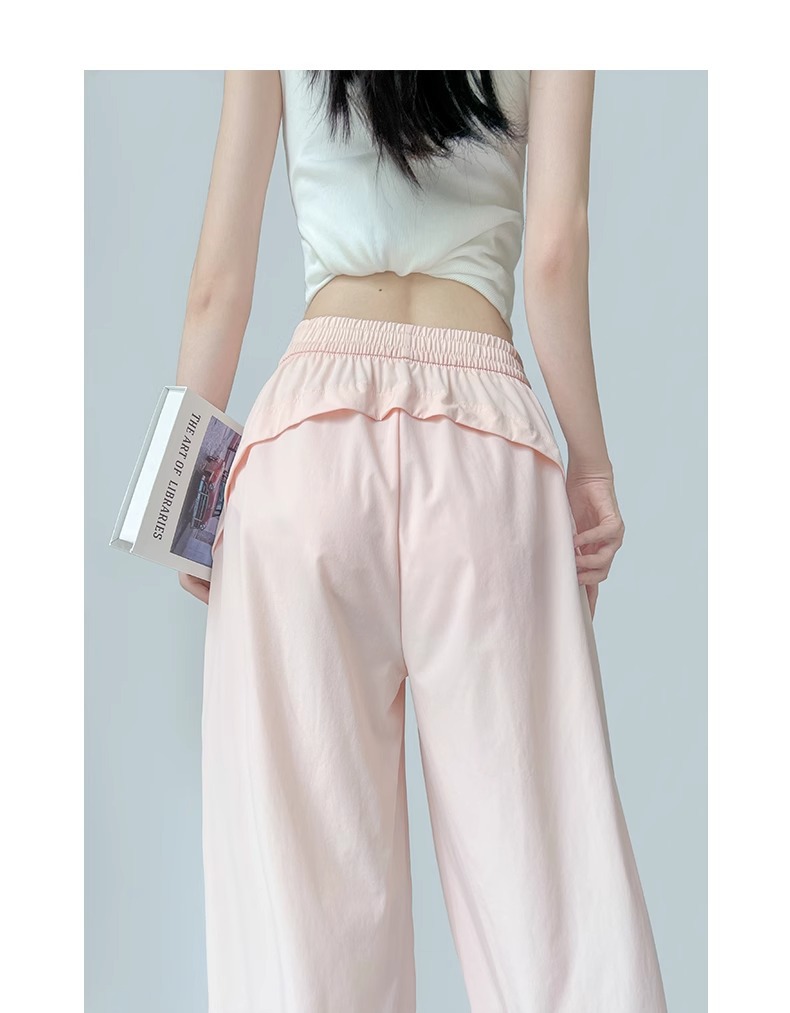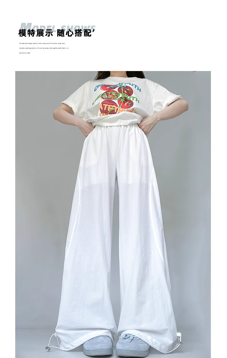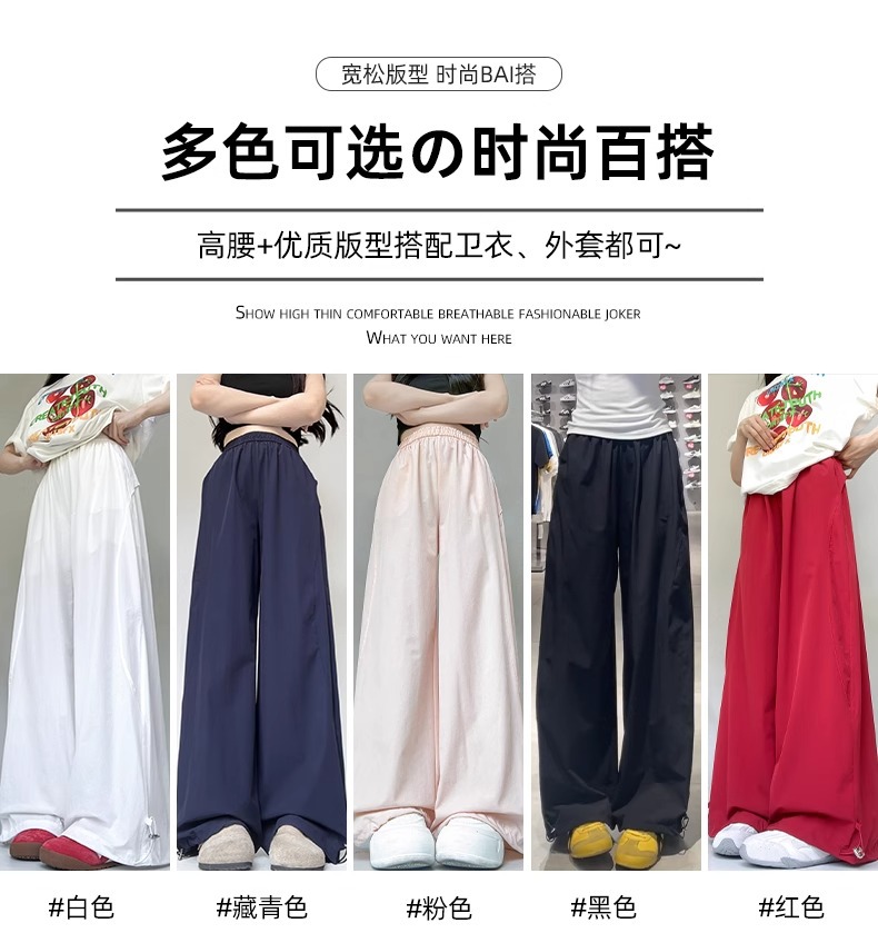 여성용 흰색 속건성 작업복 여름 얇은 2025 새로운 하이 웨이스트 슬림 루즈 드레이프 아메리칸 스포츠 바지