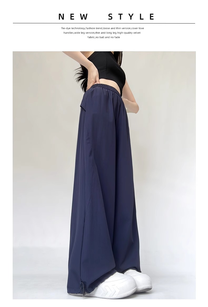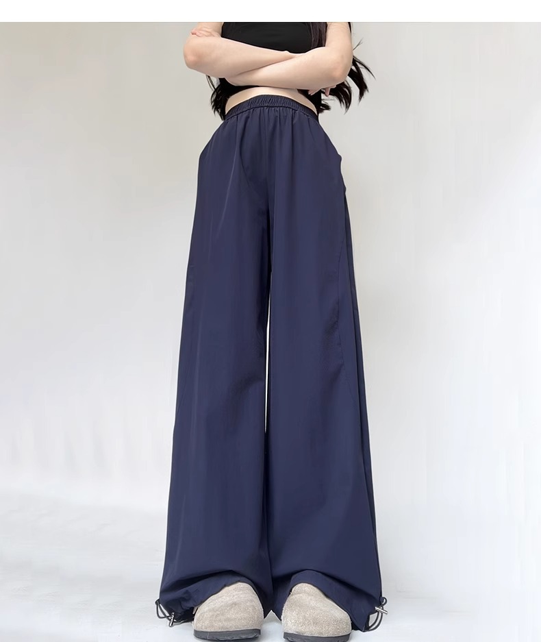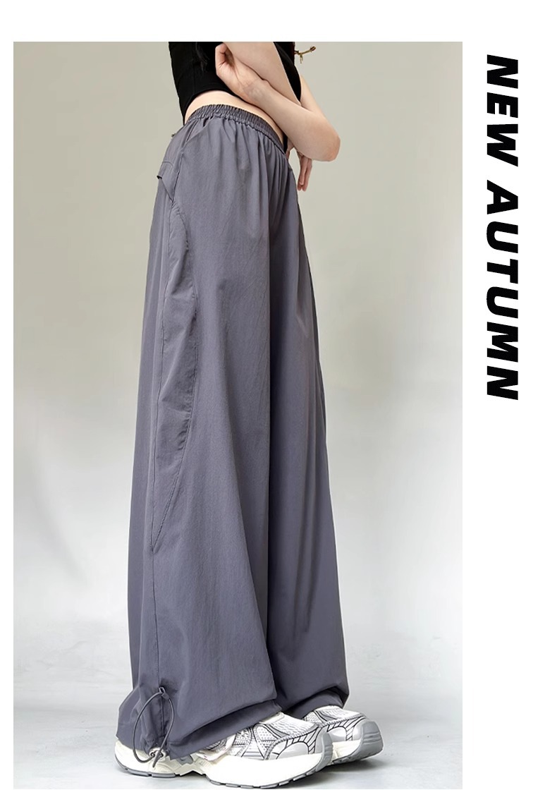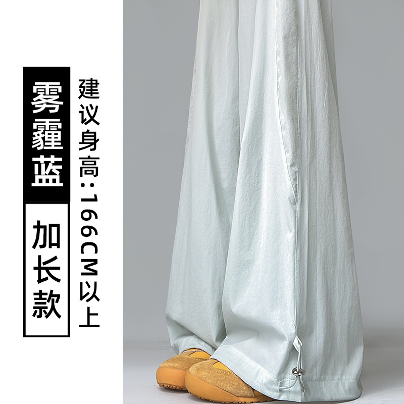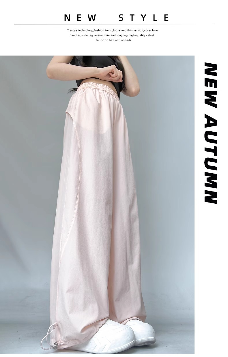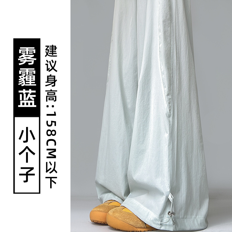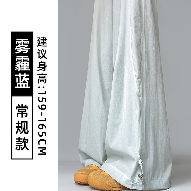 여성용 흰색 속건성 작업복 여름 얇은 2025 새로운 하이 웨이스트 슬림 루즈 드레이프 아메리칸 스포츠 바지