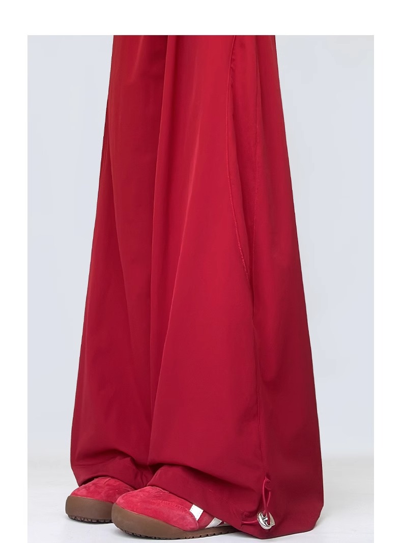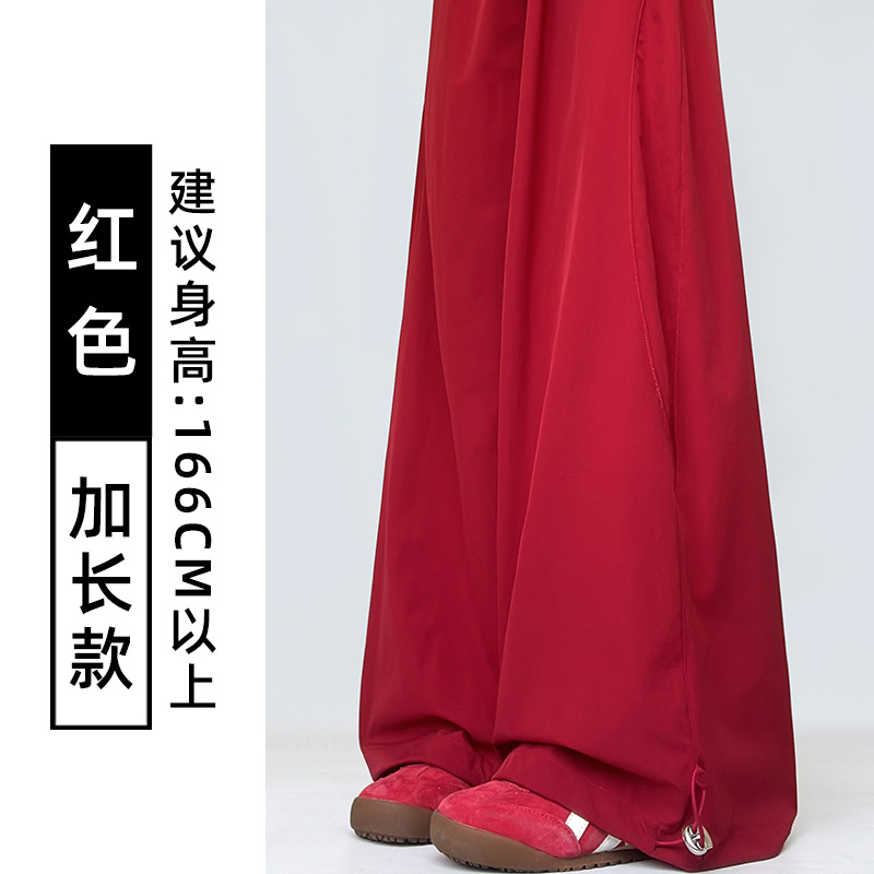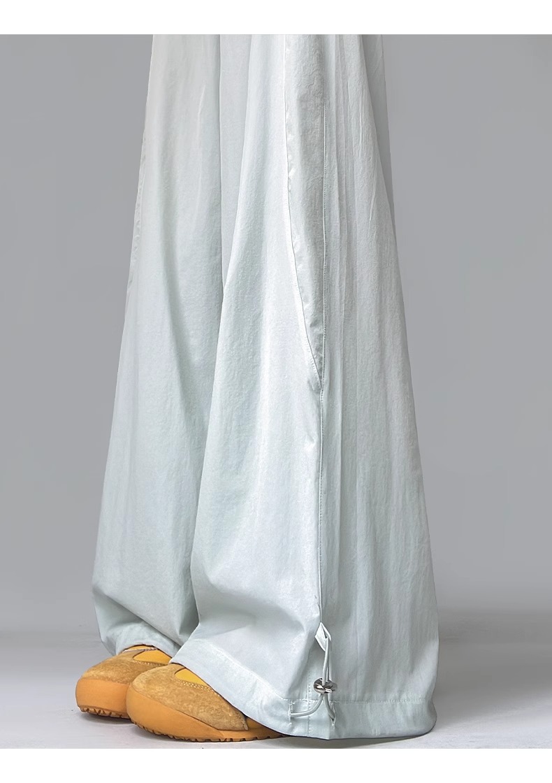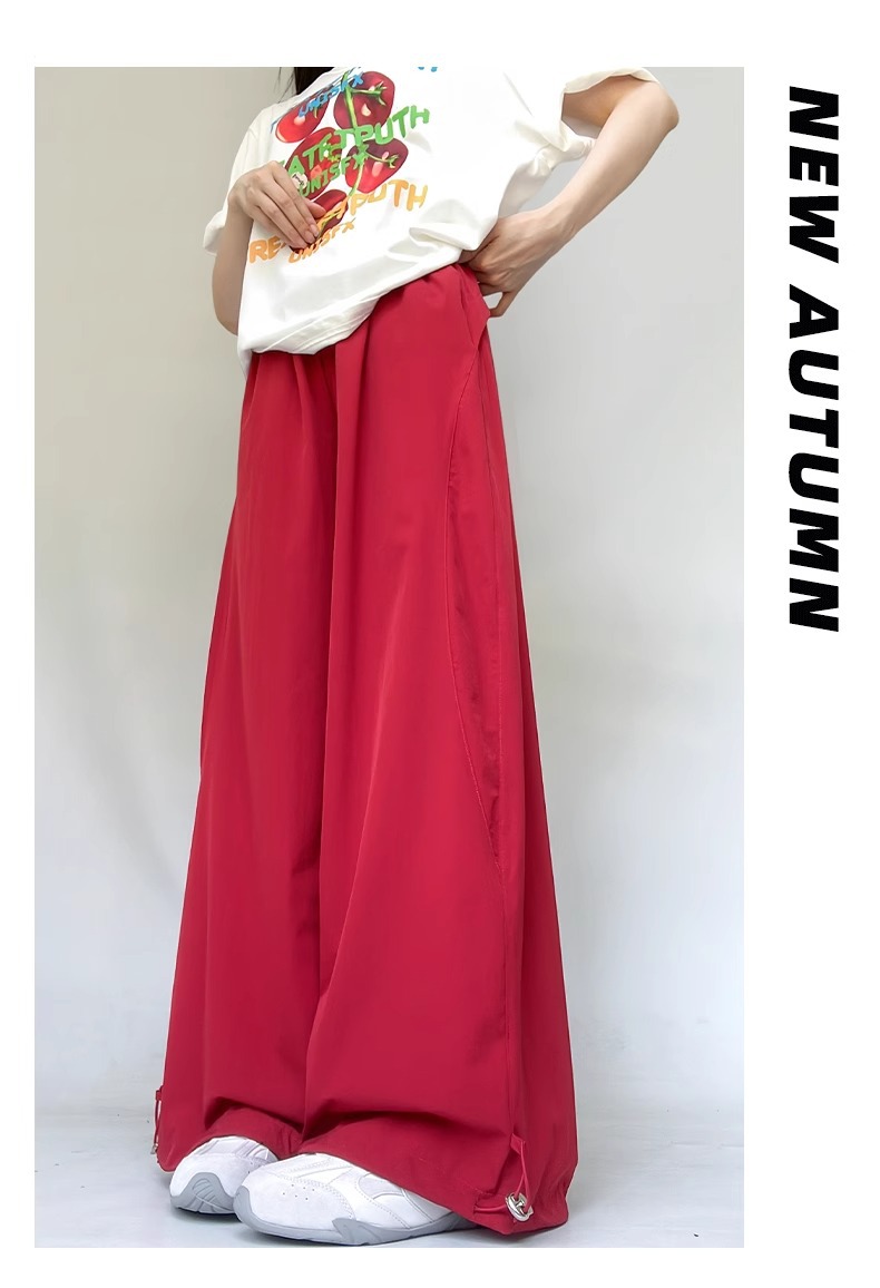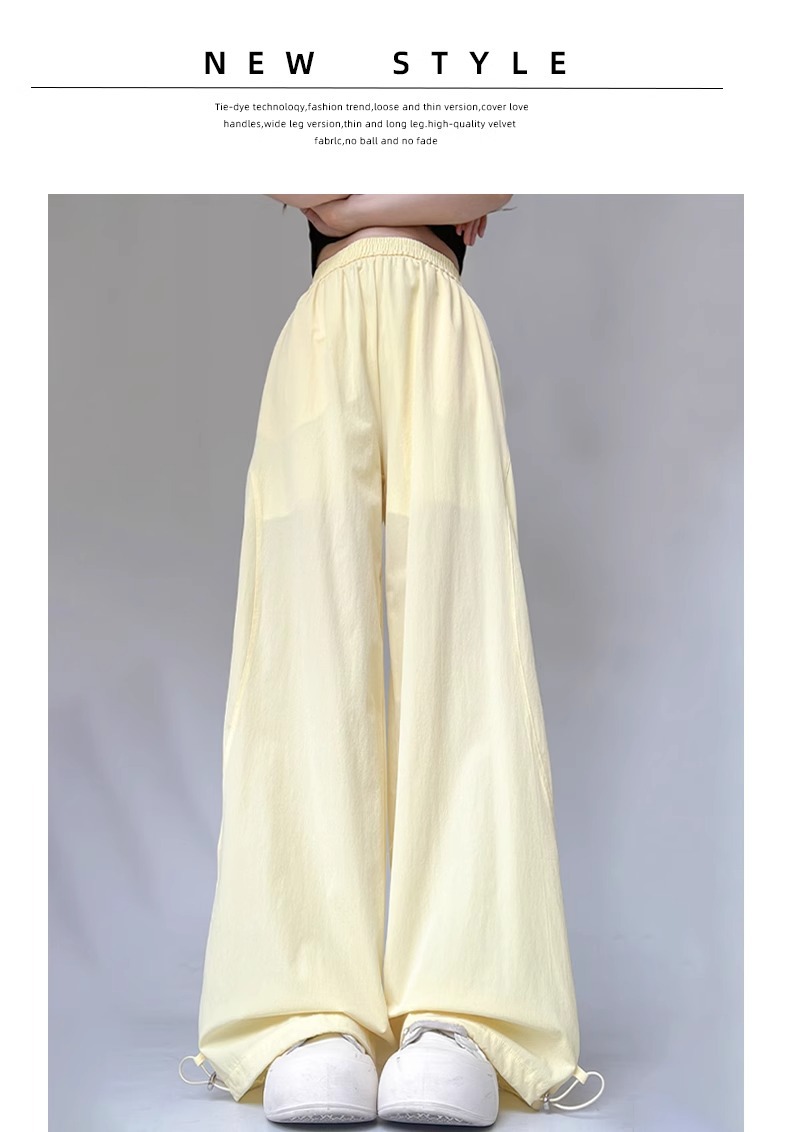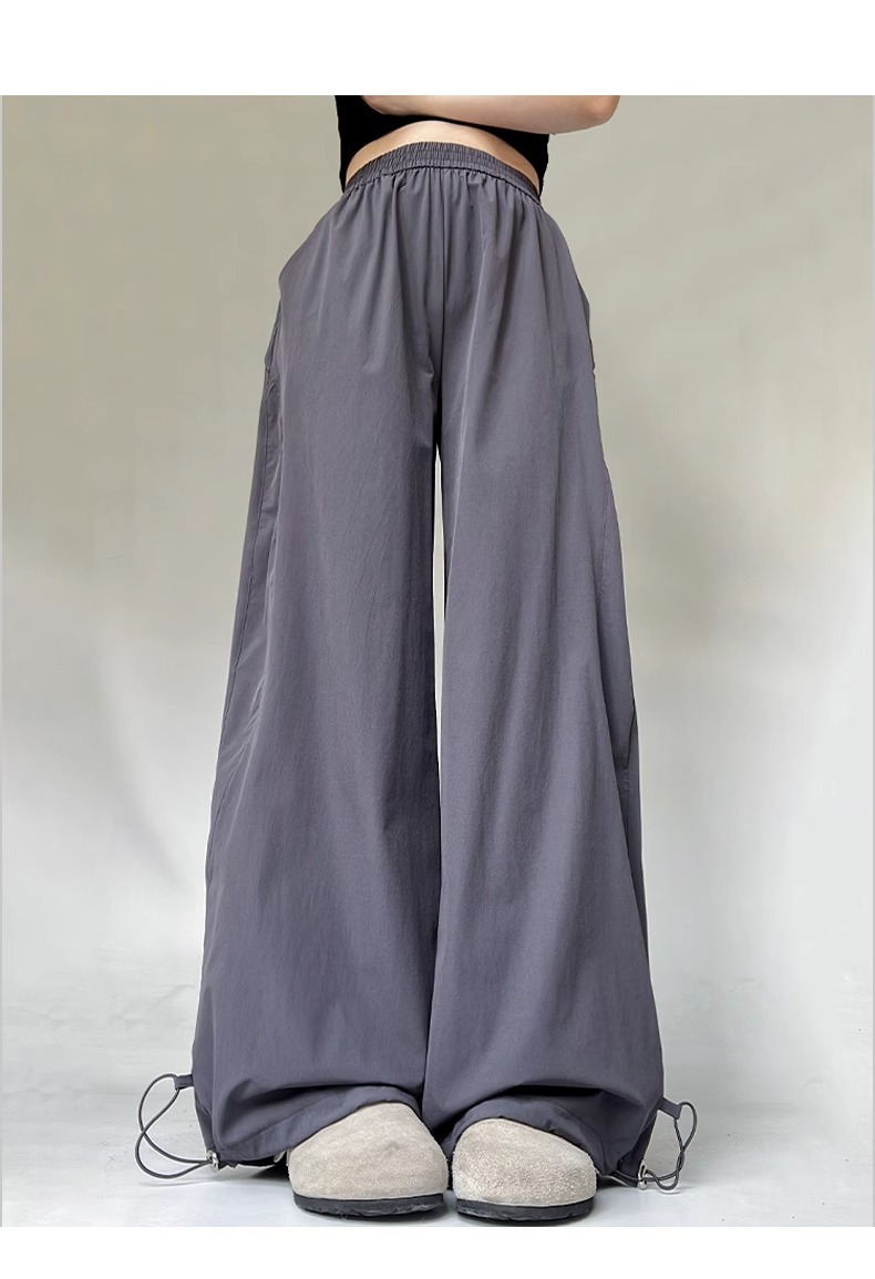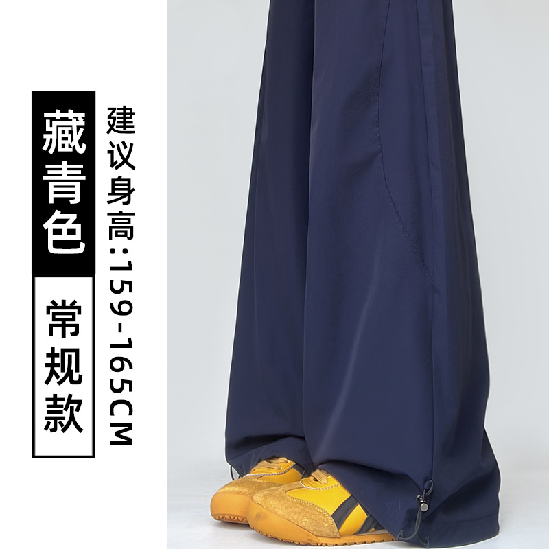 여성용 흰색 속건성 작업복 여름 얇은 2025 새로운 하이 웨이스트 슬림 루즈 드레이프 아메리칸 스포츠 바지