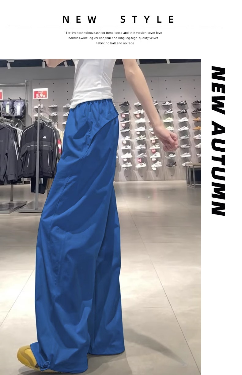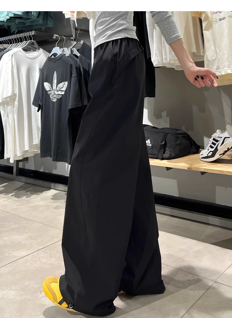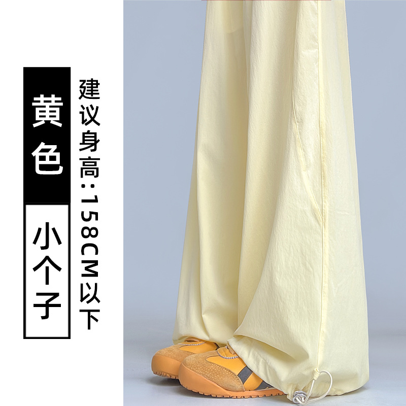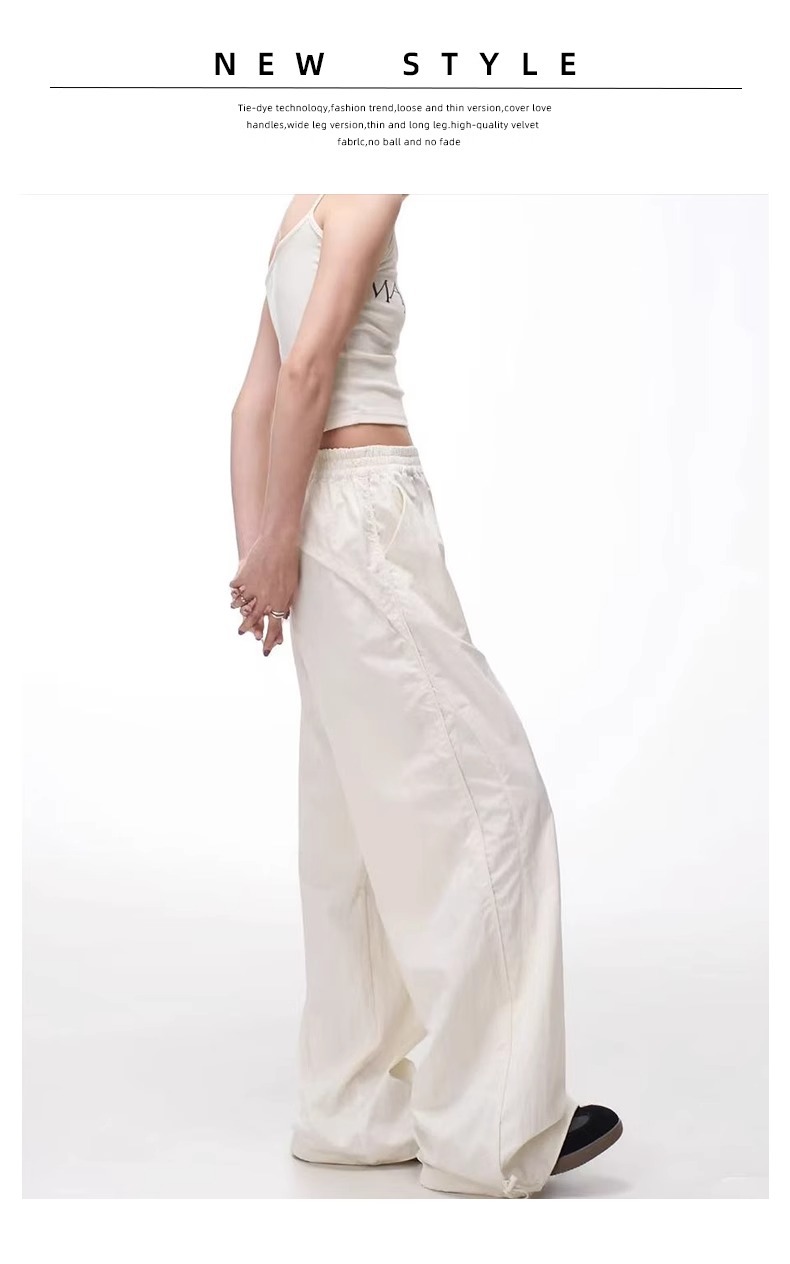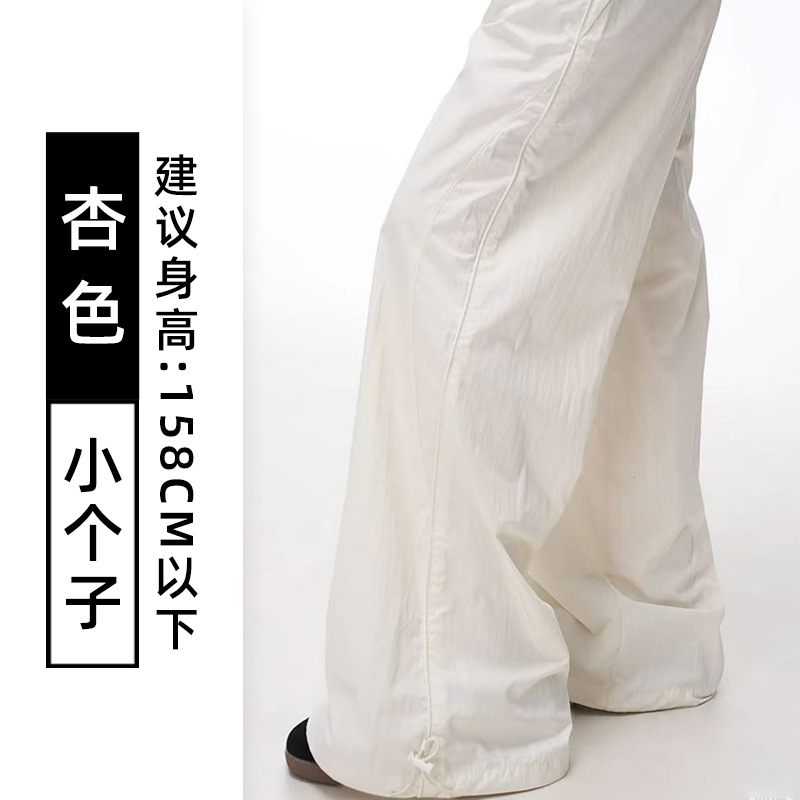 여성용 흰색 속건성 작업복 여름 얇은 2025 새로운 하이 웨이스트 슬림 루즈 드레이프 아메리칸 스포츠 바지스토어 가기