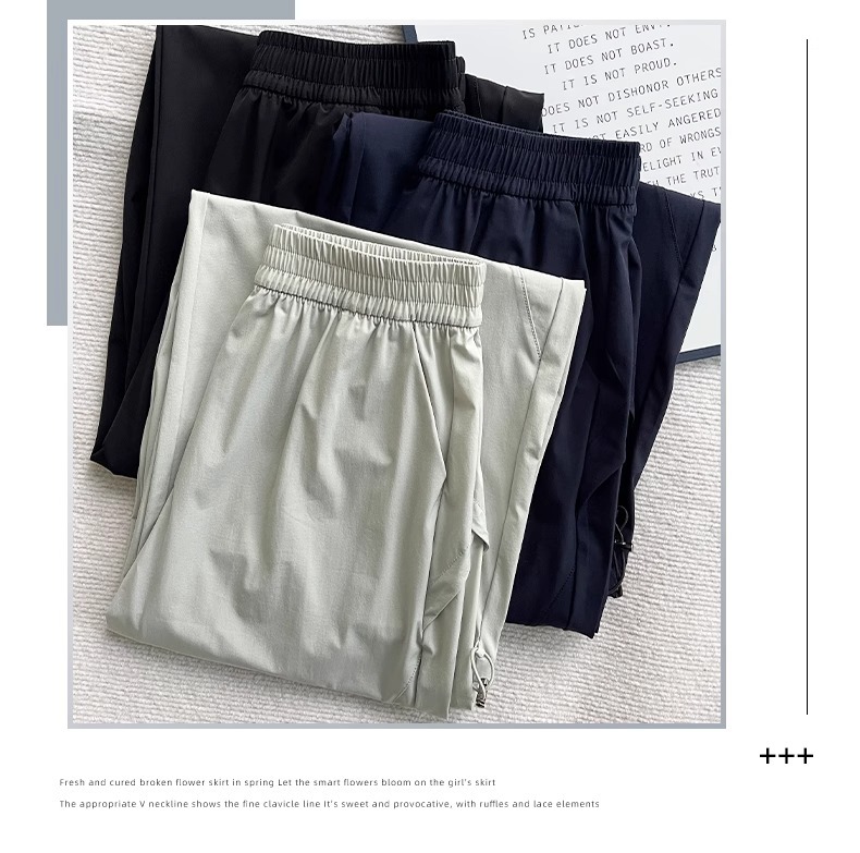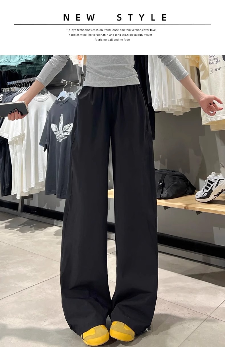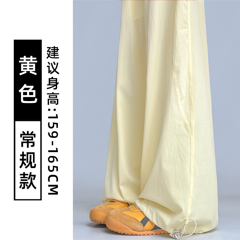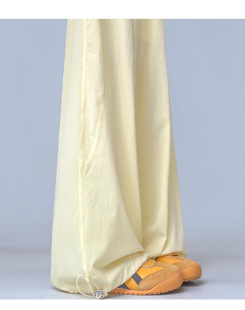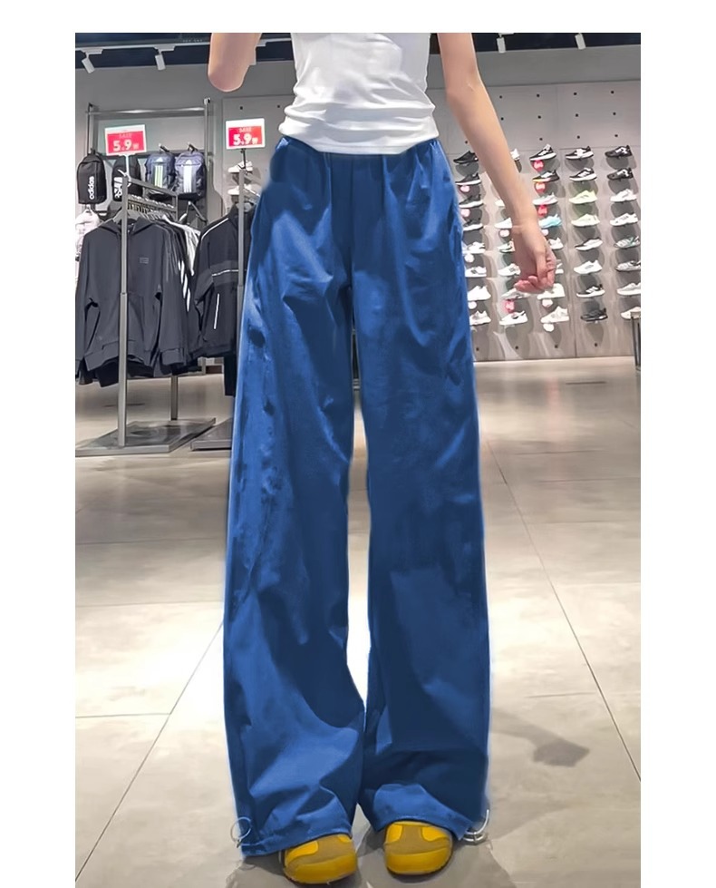여성용 흰색 속건성 작업복 여름 얇은 2025 새로운 하이 웨이스트 슬림 루즈 드레이프 아메리칸 스포츠 바지스토어 가기