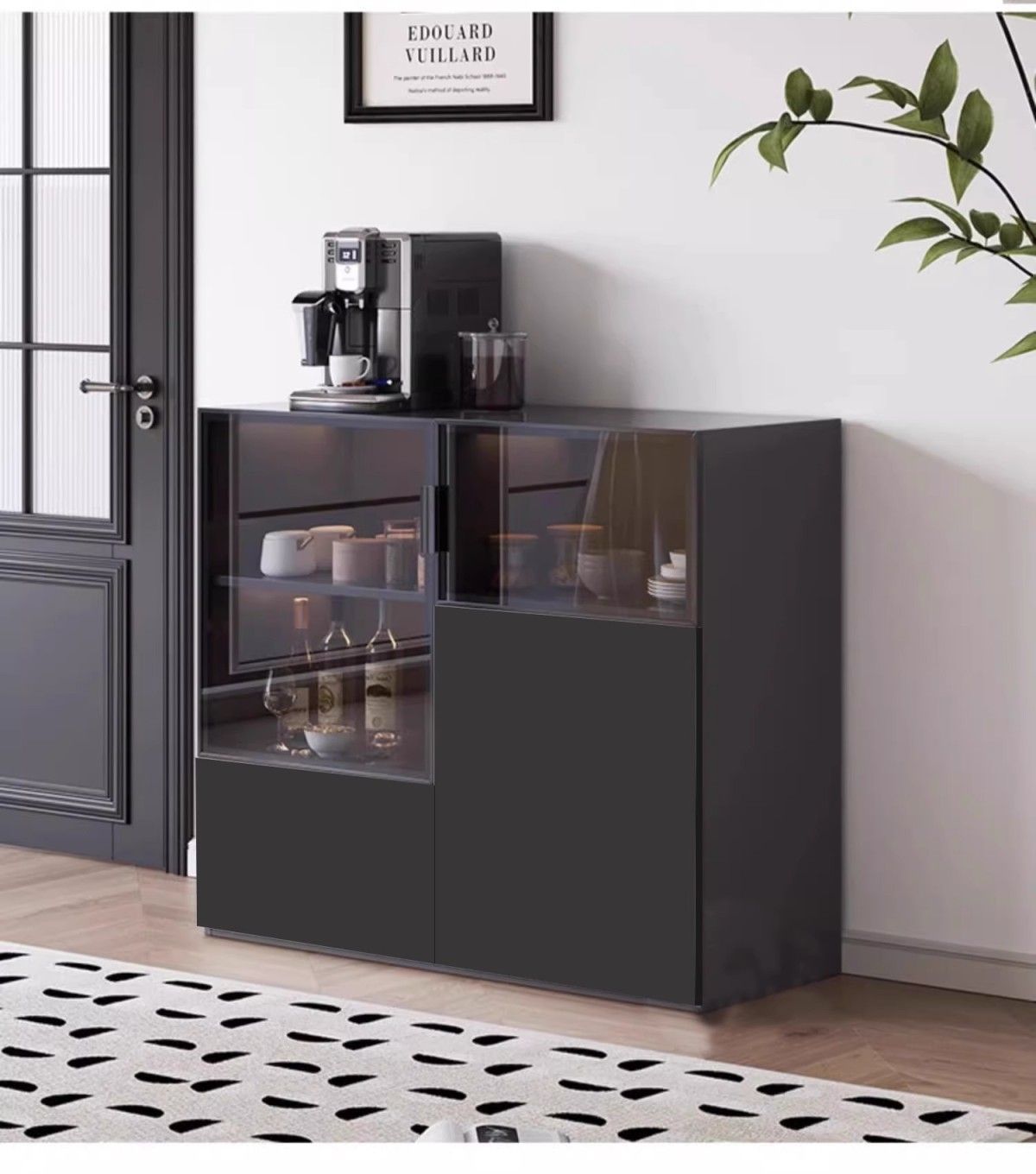 벽에 붙은 현대식 찬장, 심플한 거실, 원목 수납 캐비닛, 수납 캐비닛, 주방 티 캐비닛