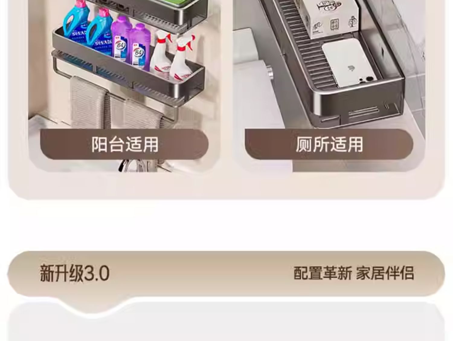 욕실 욕실 수납 선반, 펀치 없는 벽걸이형 화장실 세면대 벽 수납 선반