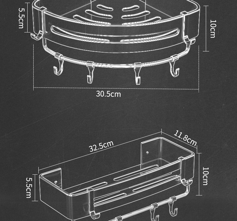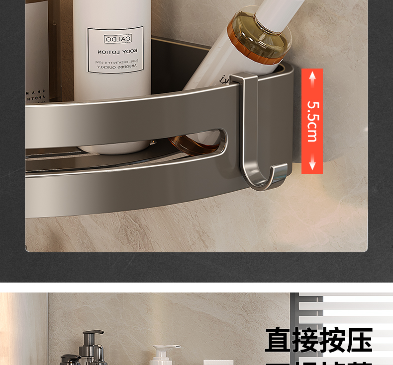 펀치 없는 건메탈 욕실 수납선반, 욕실 삼각대, 벽걸이 코너 화장실, 샤워실 수납선반