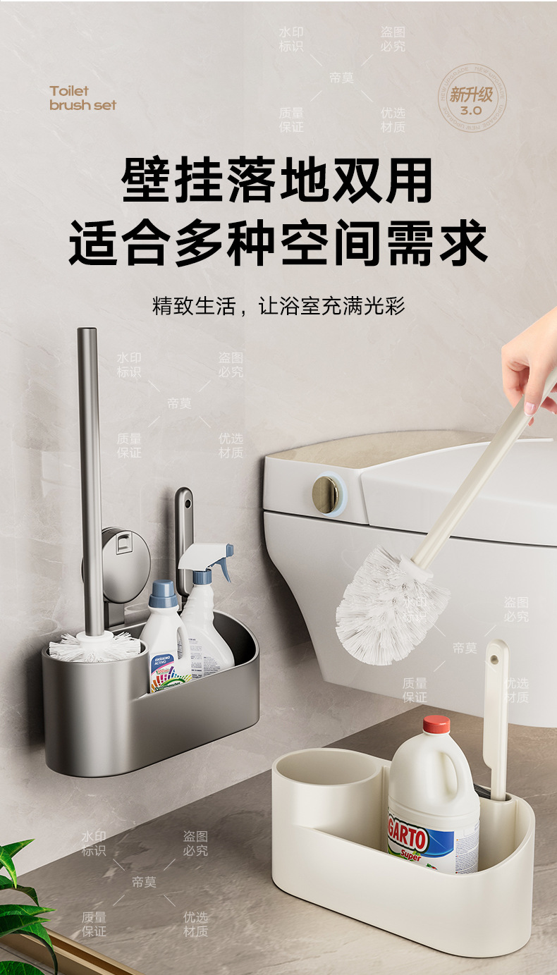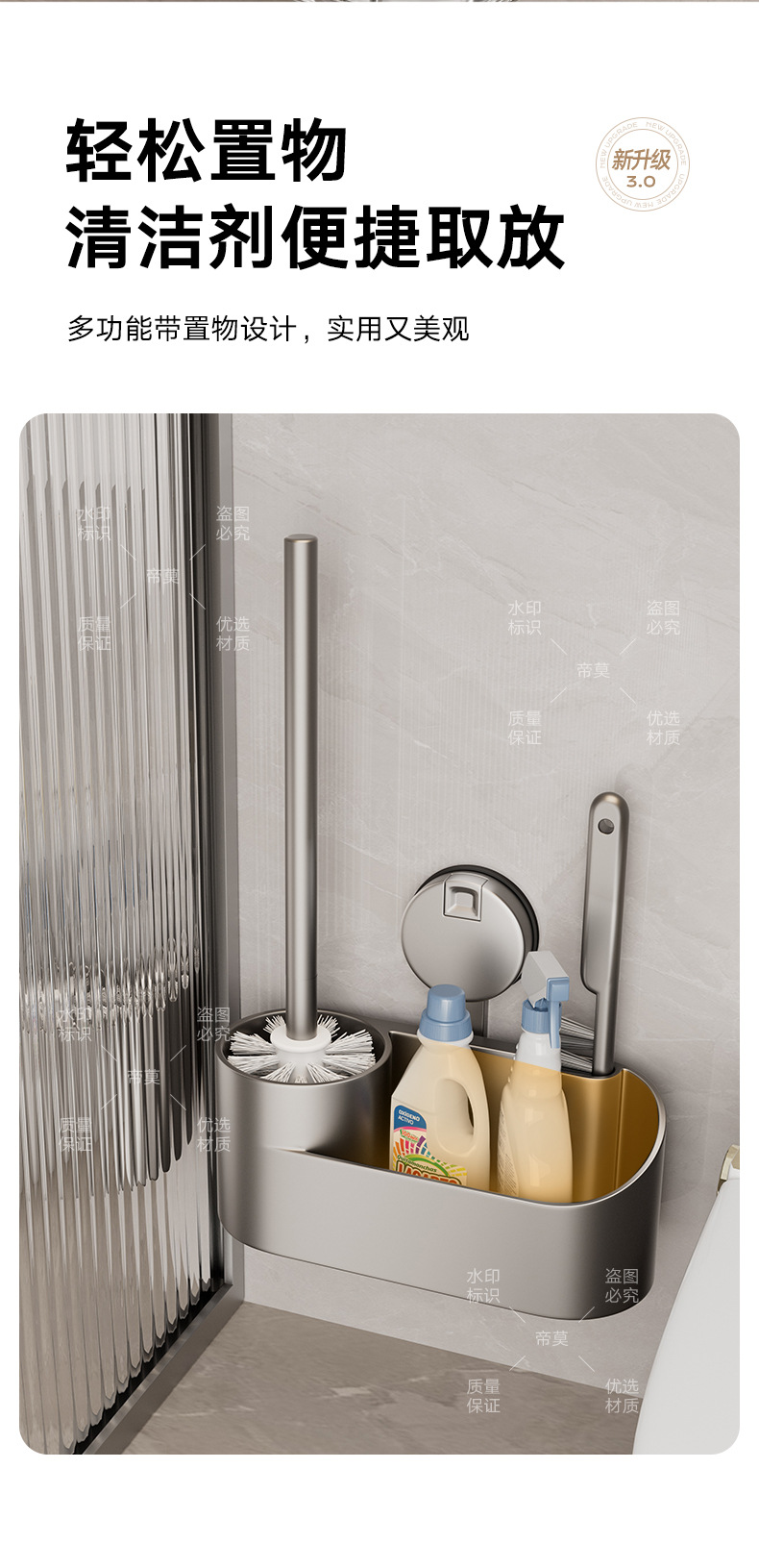 흡입 컵 변기 브러시, 가정용 사각지대 없는 변기 브러시, 욕실 벽걸이형 청소 변기 보관함
