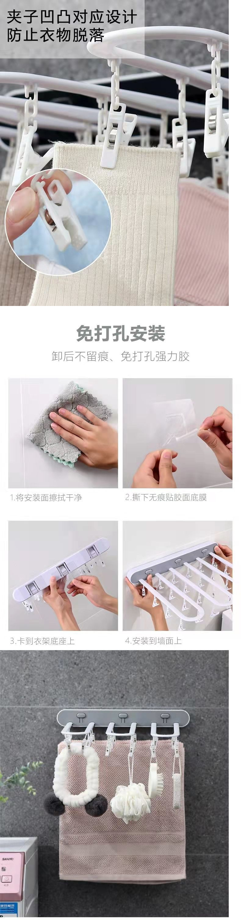 펀치 없는 접이식 빨래 건조대, 24클립, 가정용 접이식 양말걸이, 다기능 발코니 욕실 멀티 클립 양말걸이