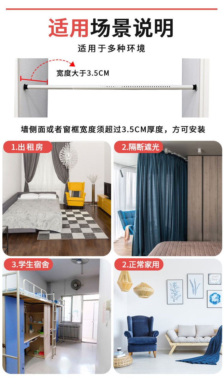 커튼 설치를 위한 구멍이 없는 인터넷 연예인 스타일 침실 차광 및 자외선 차단제 완제품 임대 주택 플로어 창 커튼 봉 세트스토어 가기