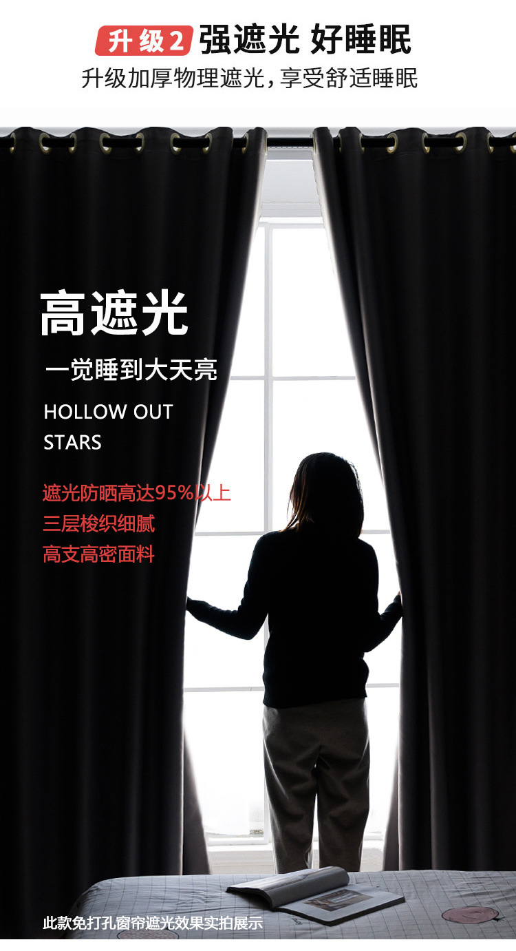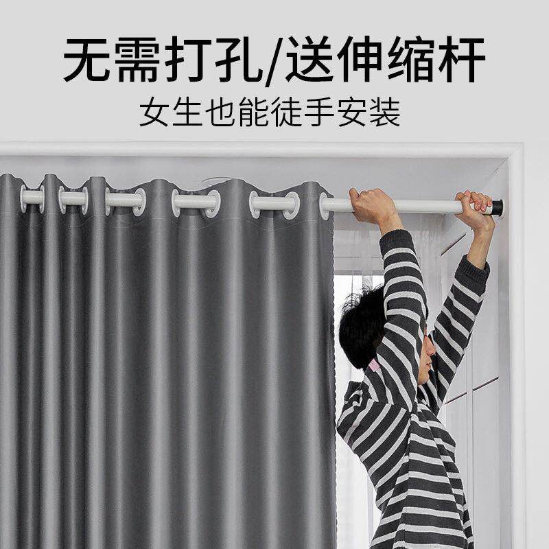 커튼 설치를 위한 구멍이 없는 인터넷 연예인 스타일 침실 차광 및 자외선 차단제 완제품 임대 주택 플로어 창 커튼 봉 세트