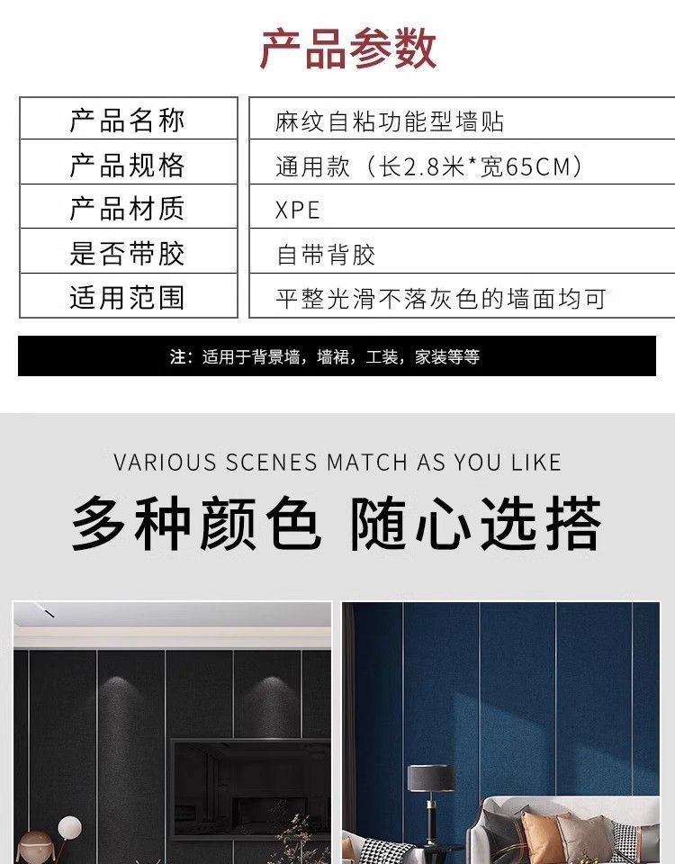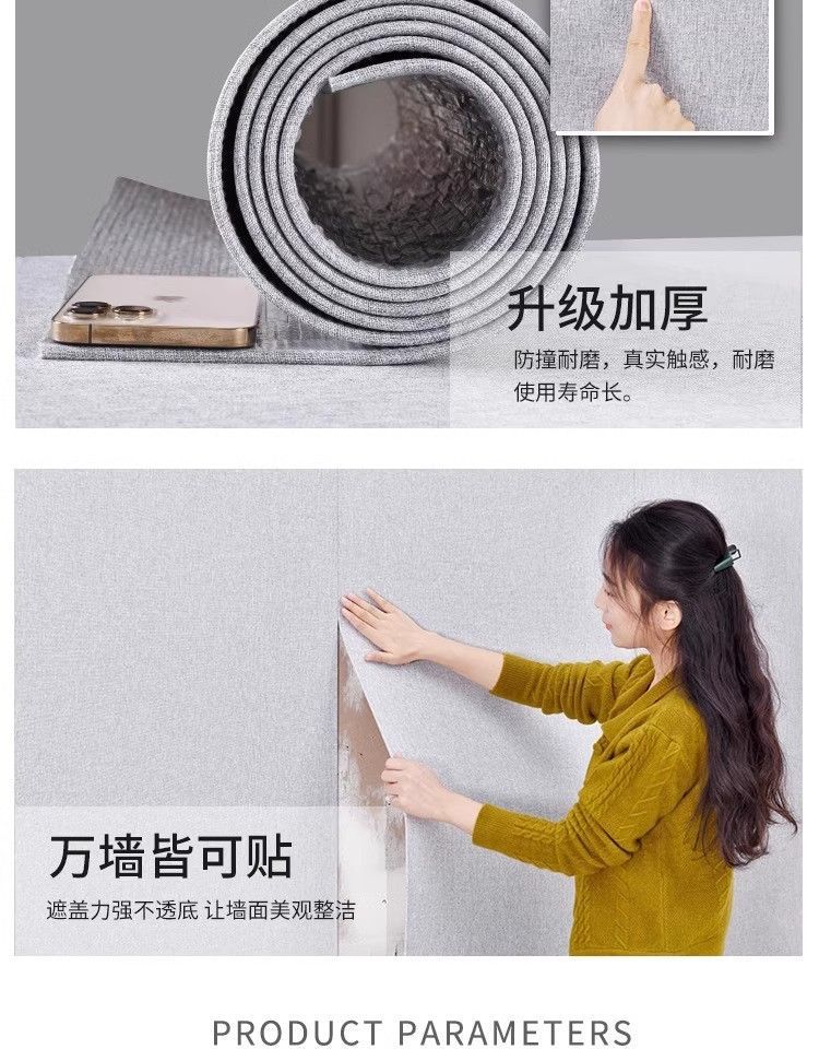 두꺼운 린넨 벽 천 자체 접착 침대 옆 침실 TV 배경 벽 소프트 팩 벽 스티커 방수 및 방습 벽지스토어 가기