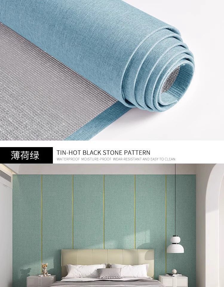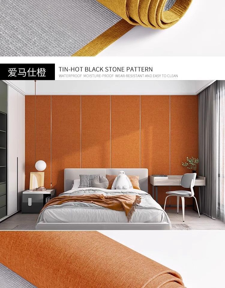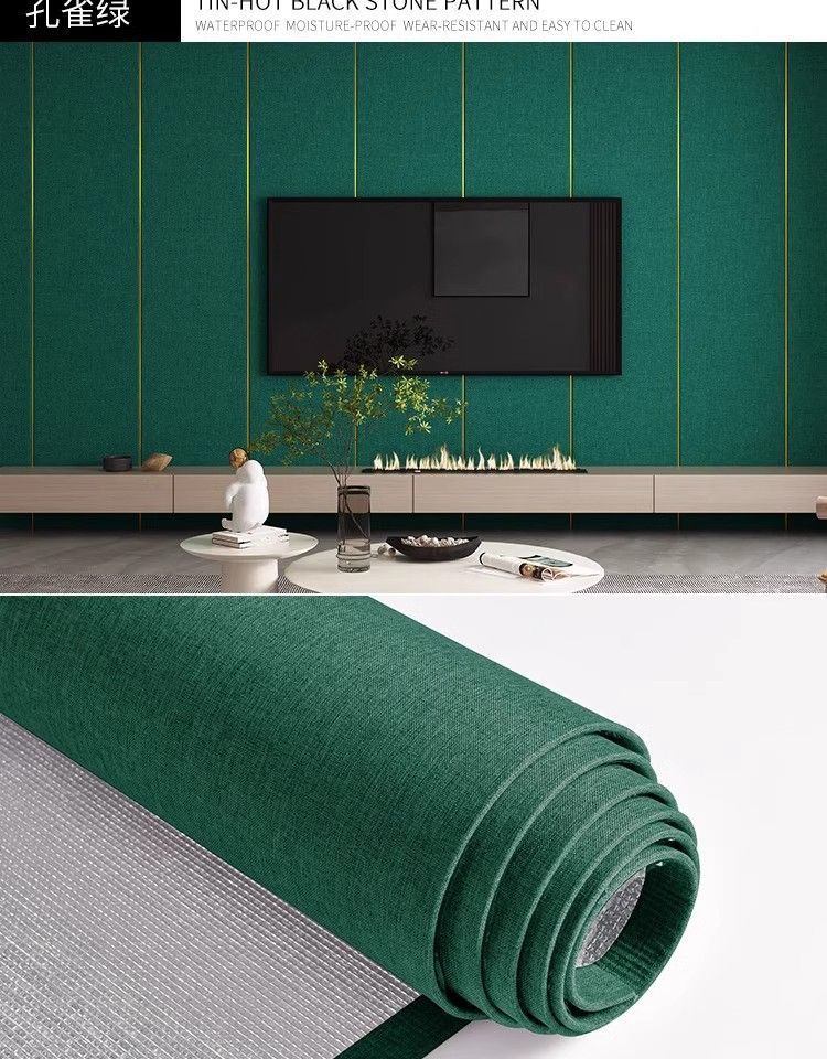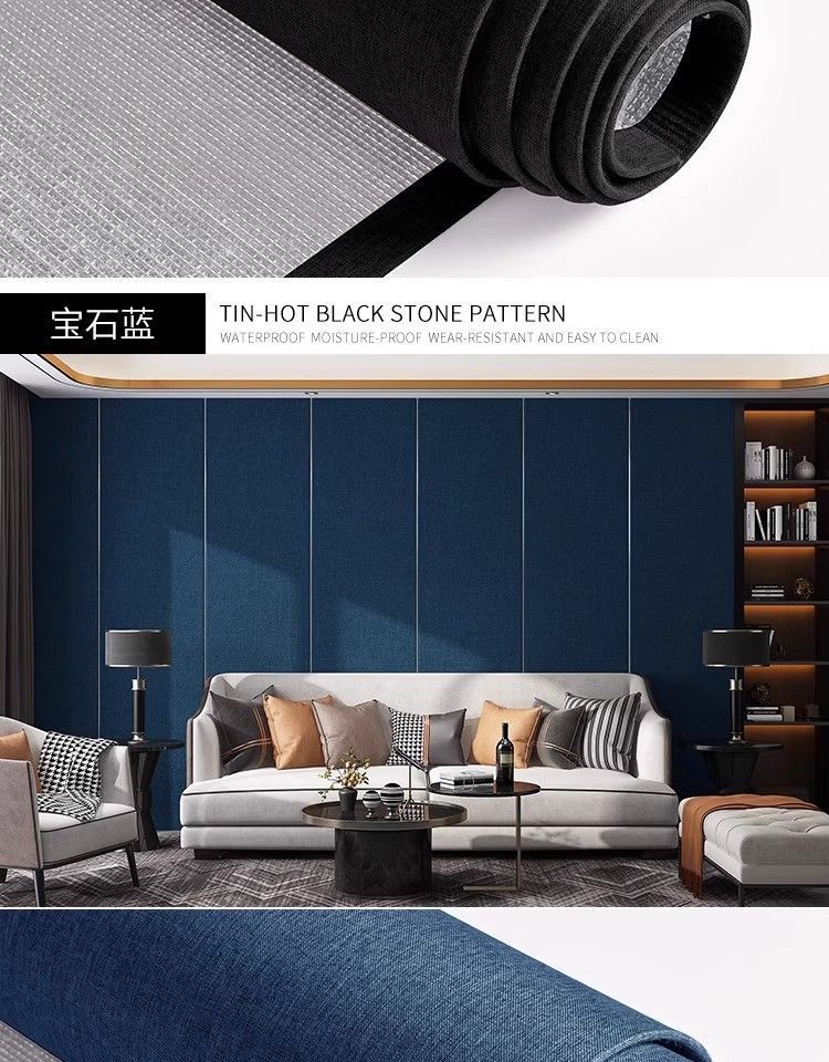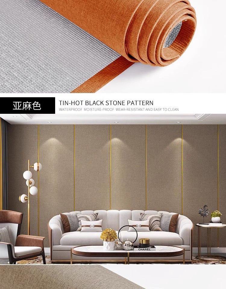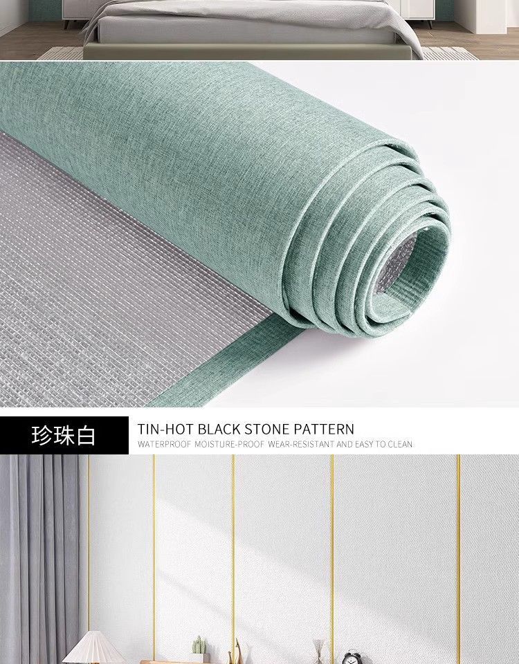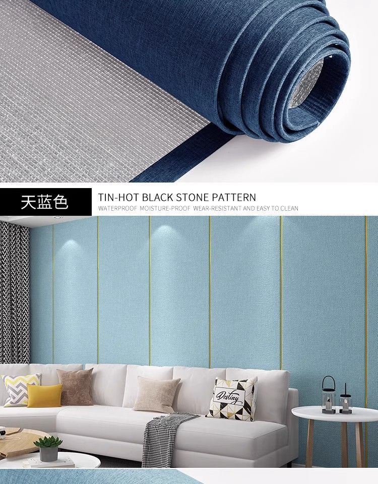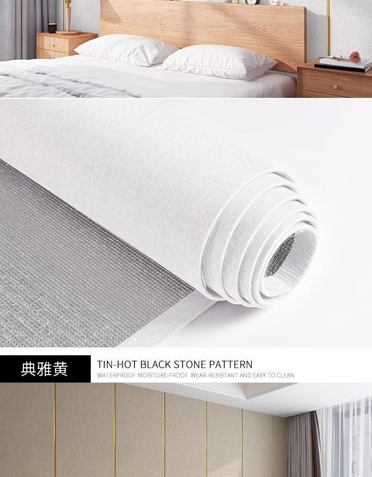두꺼운 린넨 벽 천 자체 접착 침대 옆 침실 TV 배경 벽 소프트 팩 벽 스티커 방수 및 방습 벽지