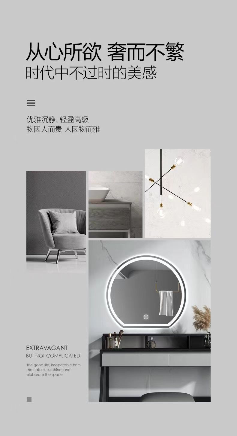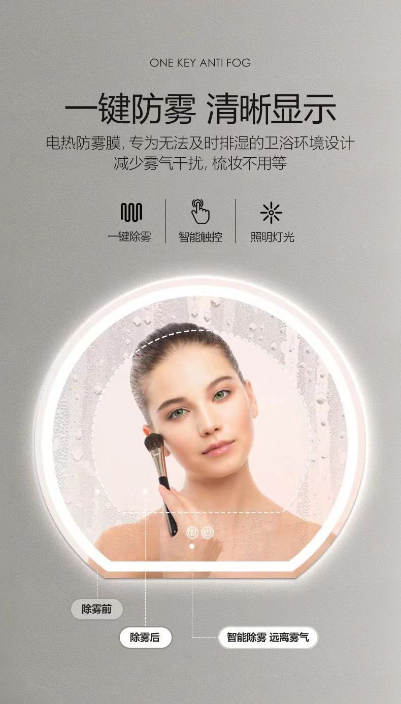 반원형 스마트 거울 화장대 욕실 거울 조명이있는 메이크업 미용실 벽걸이 형 욕실 led 헤어 신제품