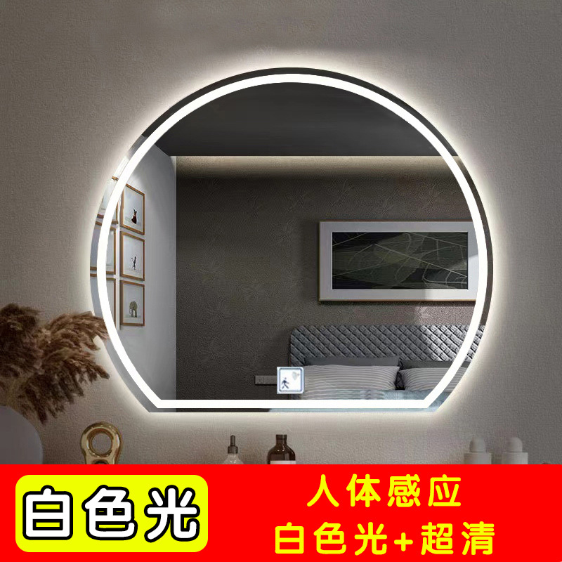 반원형 스마트 거울 화장대 욕실 거울 조명이있는 메이크업 미용실 벽걸이 형 욕실 led 헤어 신제품스토어 가기