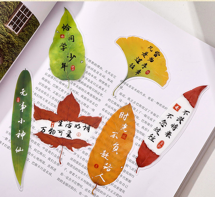 Wenpai 나뭇잎 책갈피 초등학생 선물 중학생 실용상 대학 입시 영감 선물 개학 선물