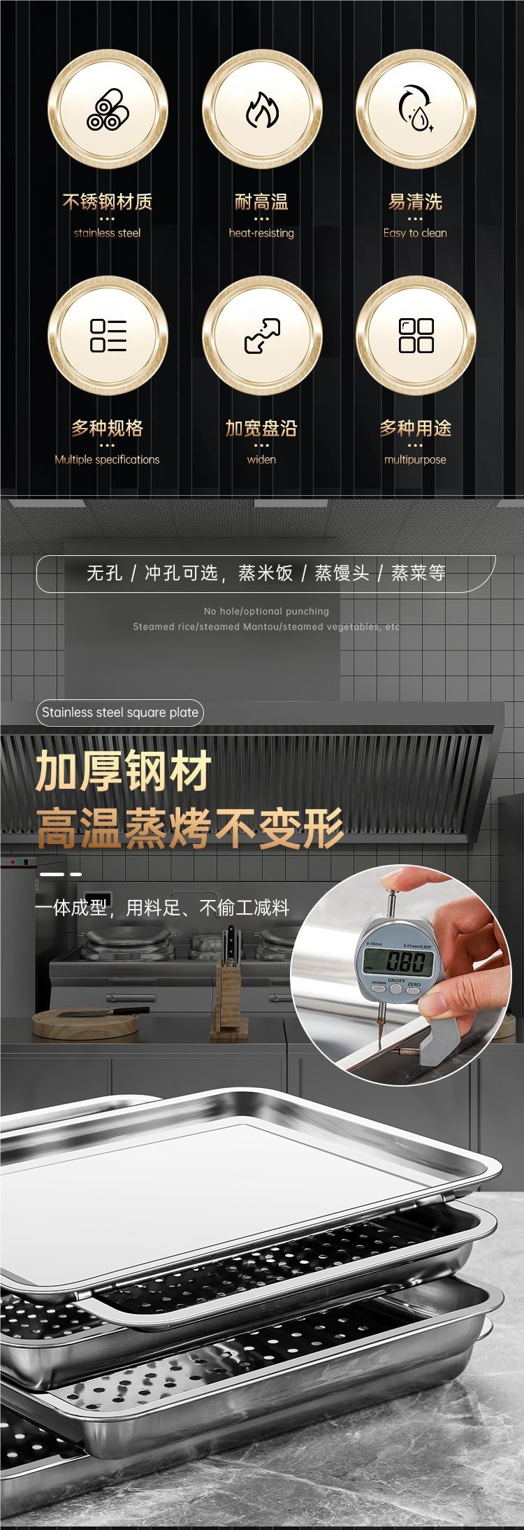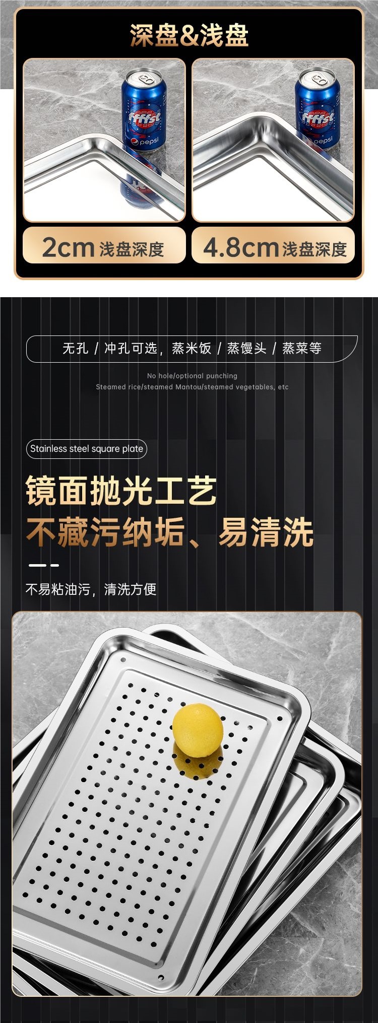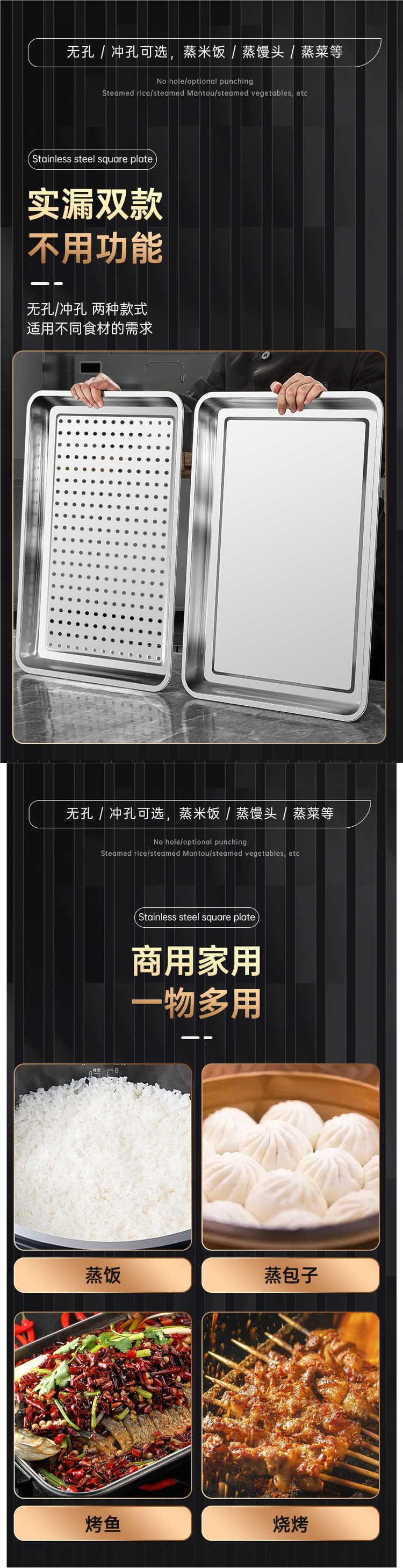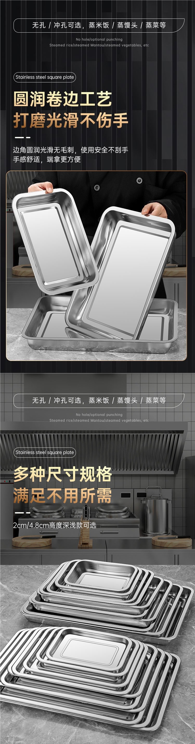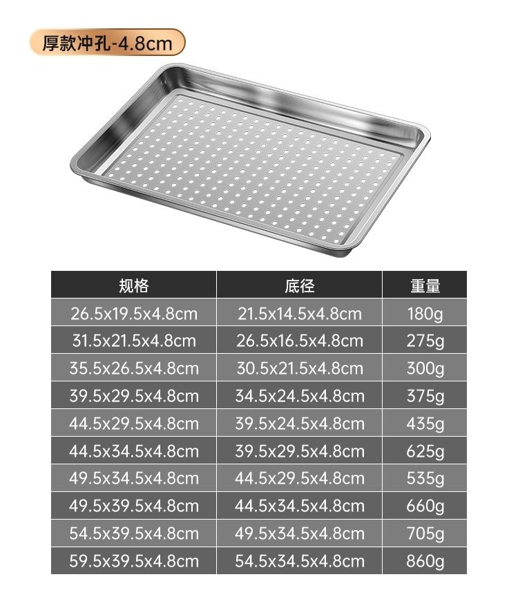 304 스테인레스 스틸 직사각형 트레이 사각형 트레이 찜 밥 트레이 찜 밥 캐비닛 찜 트롤리 찌개 가방 구멍이있는 차 트레이 바베큐 트레이
