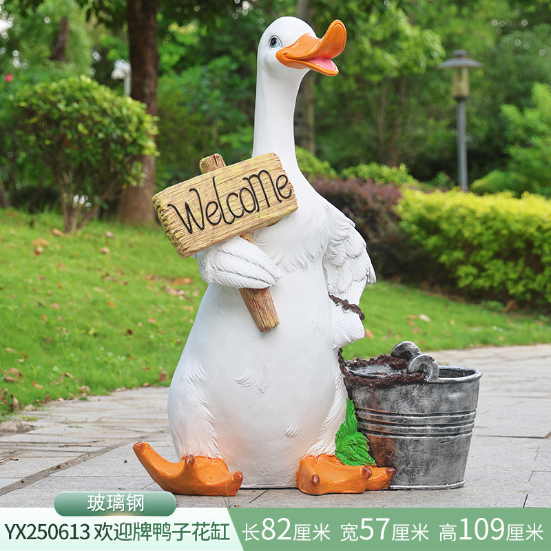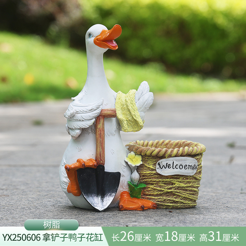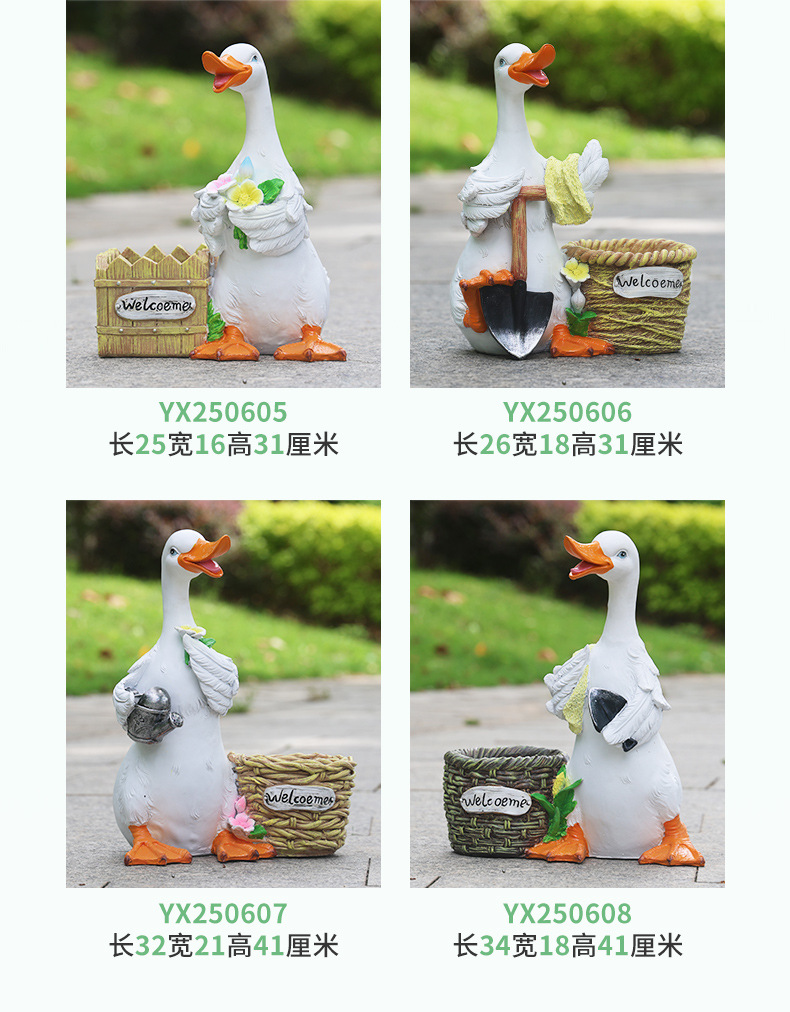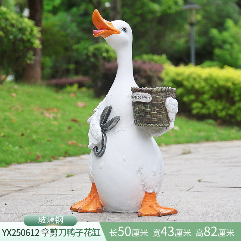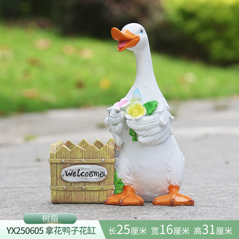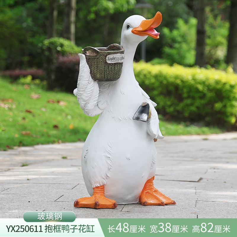 국경 간 temu 오리 꽃 항아리 수지 장식품 정원 안뜰 녹색 식물 다육 화분 유리 섬유 강철 동물 장식품 오리