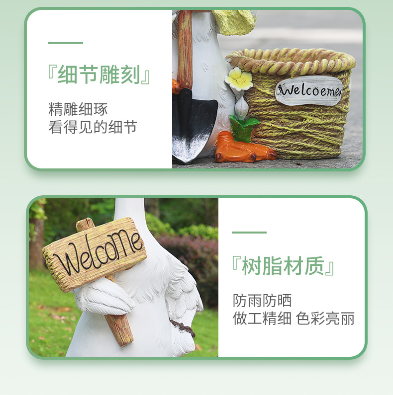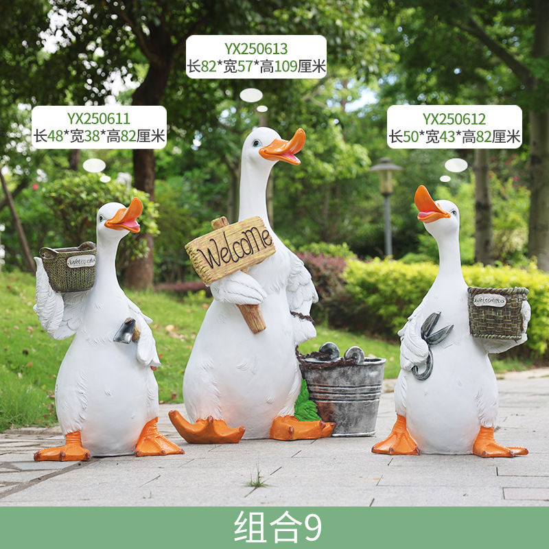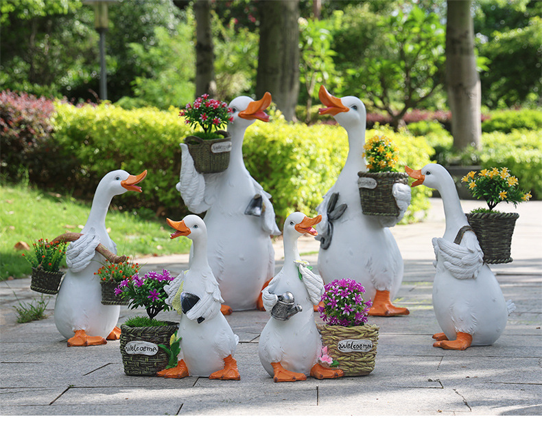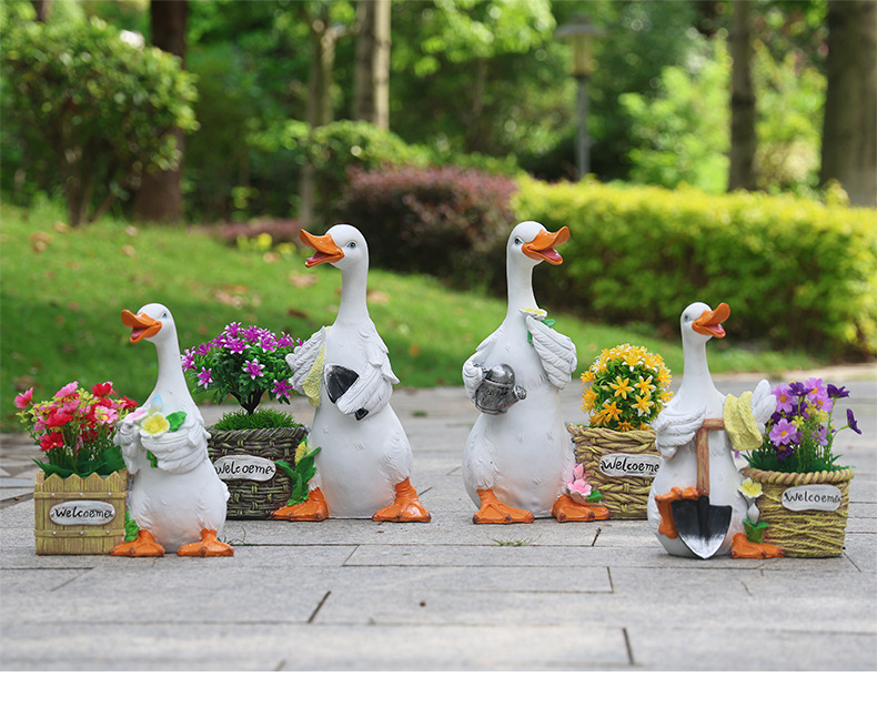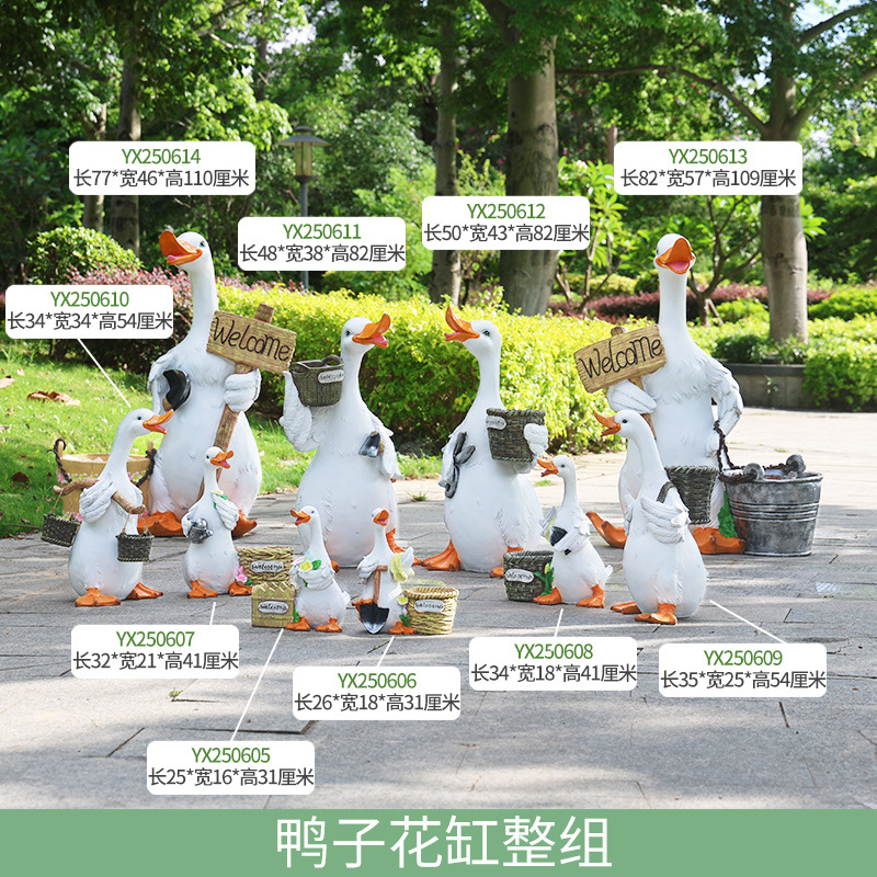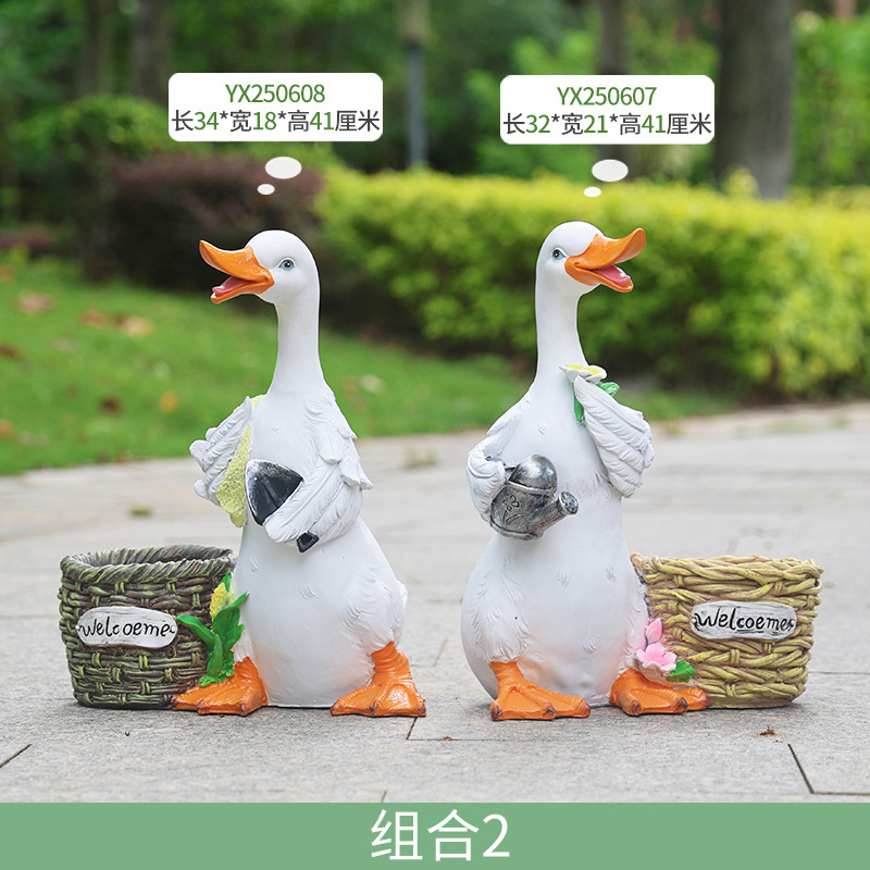 국경 간 temu 오리 꽃 항아리 수지 장식품 정원 안뜰 녹색 식물 다육 화분 유리 섬유 강철 동물 장식품 오리
