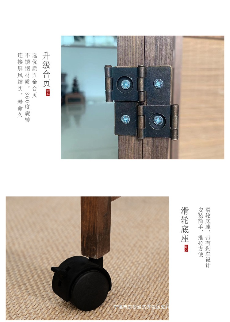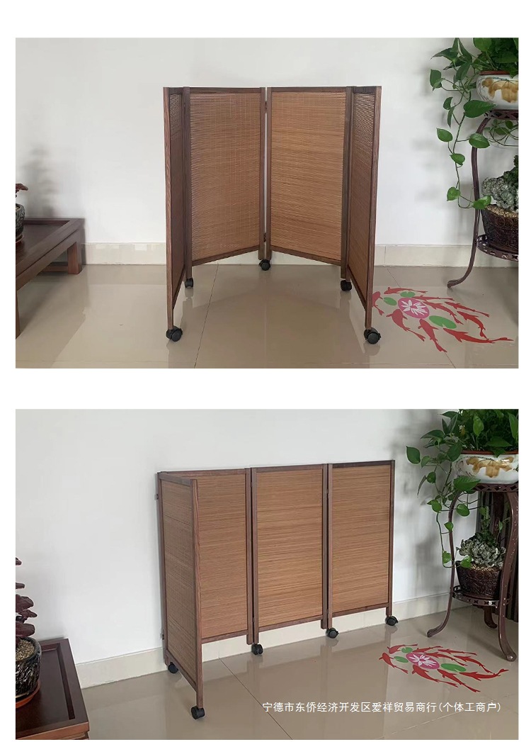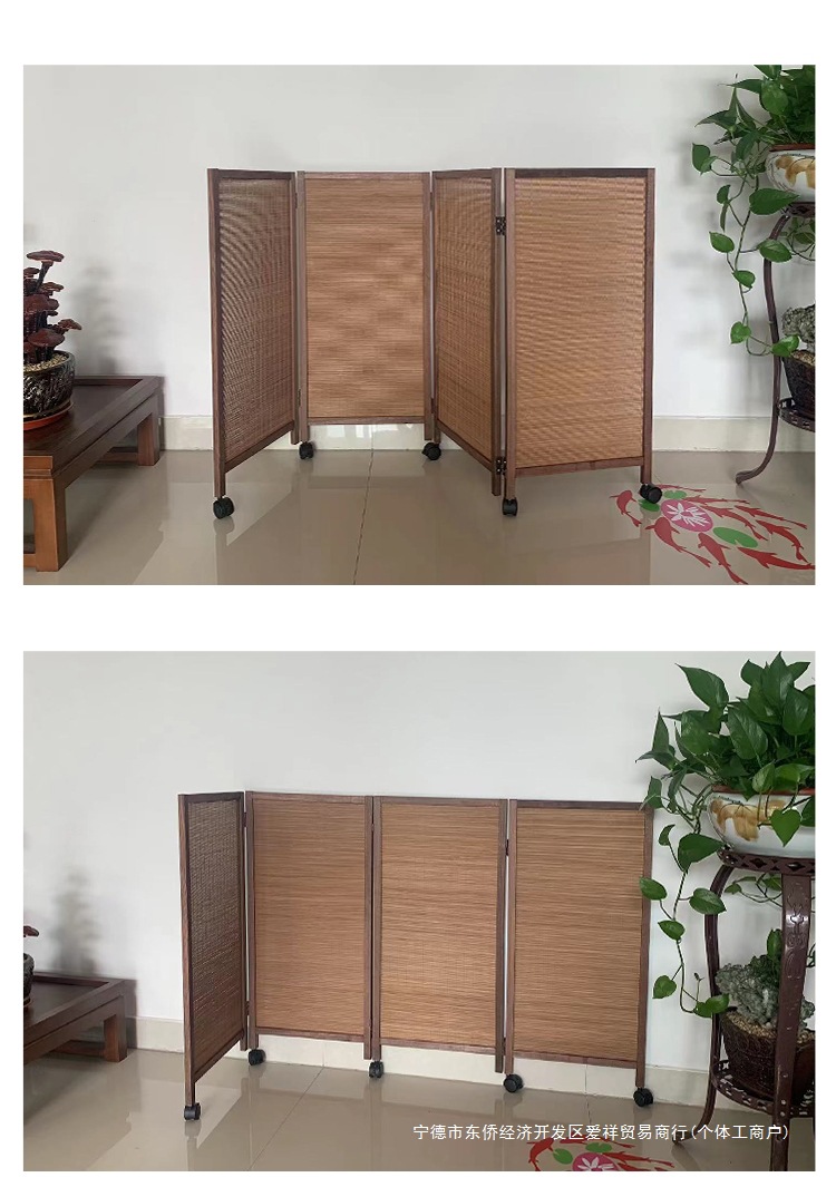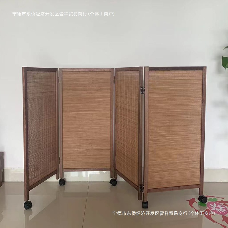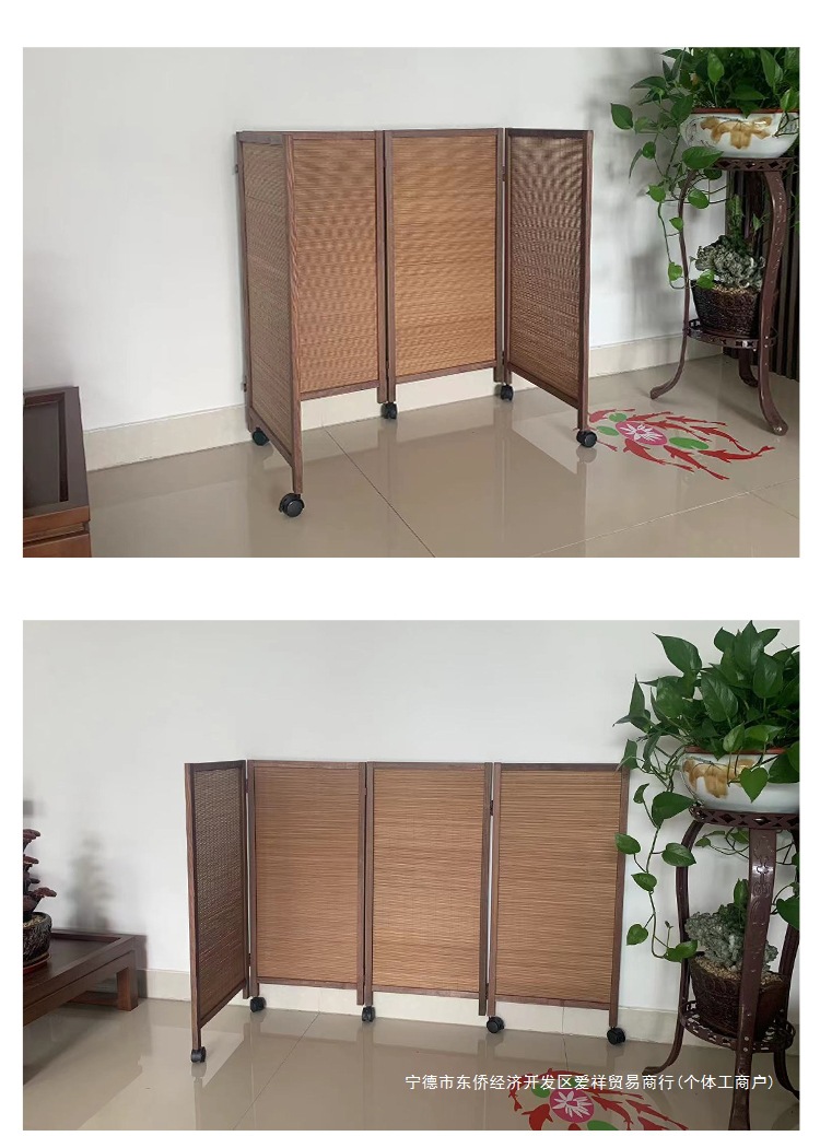 대나무로 짠 복고풍 소형 스크린, 슬라이딩 휠이 있는 이동식, 유치원 특수 애완동물 울타리, 게임 공간 칸막이, 접이식스토어 가기