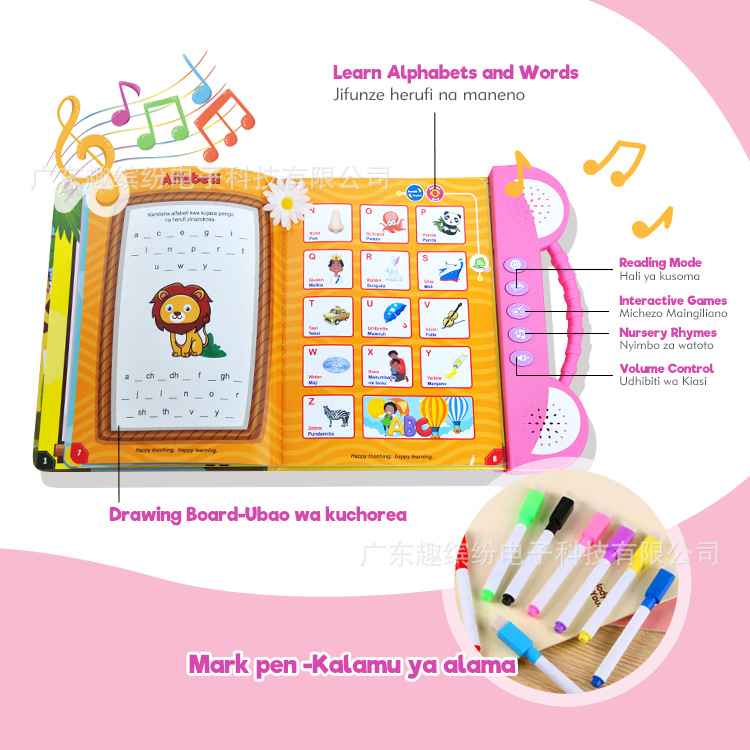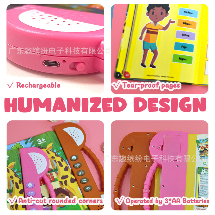 广东趣缤纷电子有限公司提供多语种电子发声书,涵盖西班牙语、法语、阿拉伯语、英语、斯瓦希里语等多种现货语言版本。我们专注于儿童早教、语言启蒙类发声图书,支持小语种定制服务,从外观设计、内容排版、音频录制到生产包装,提供一站式解决方案。无论您需要常用语言还是小语种,我们都能为您量身定制,满足不同市场需求,欢迎咨询定制!