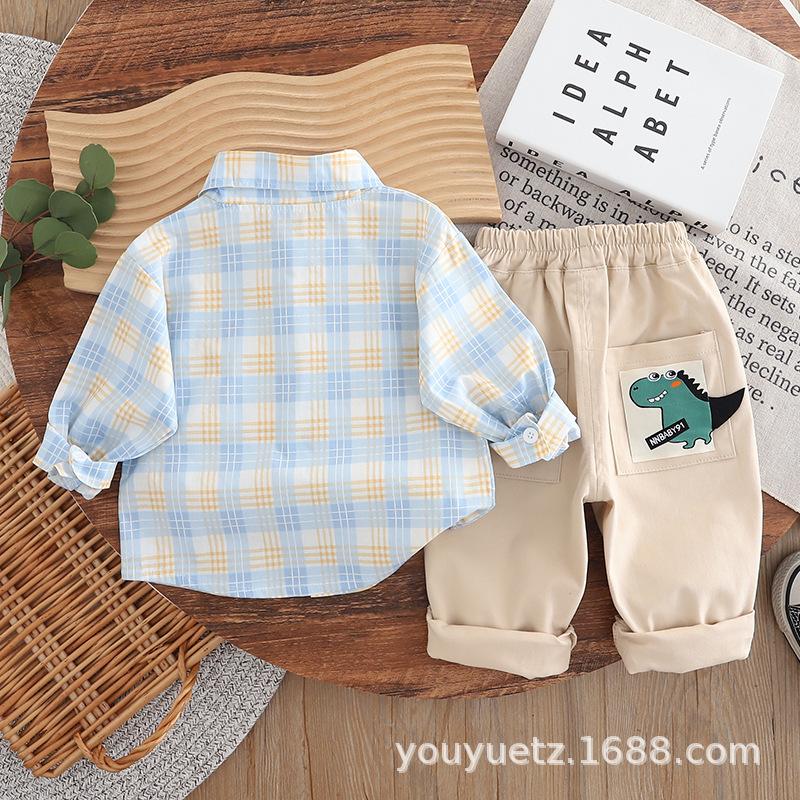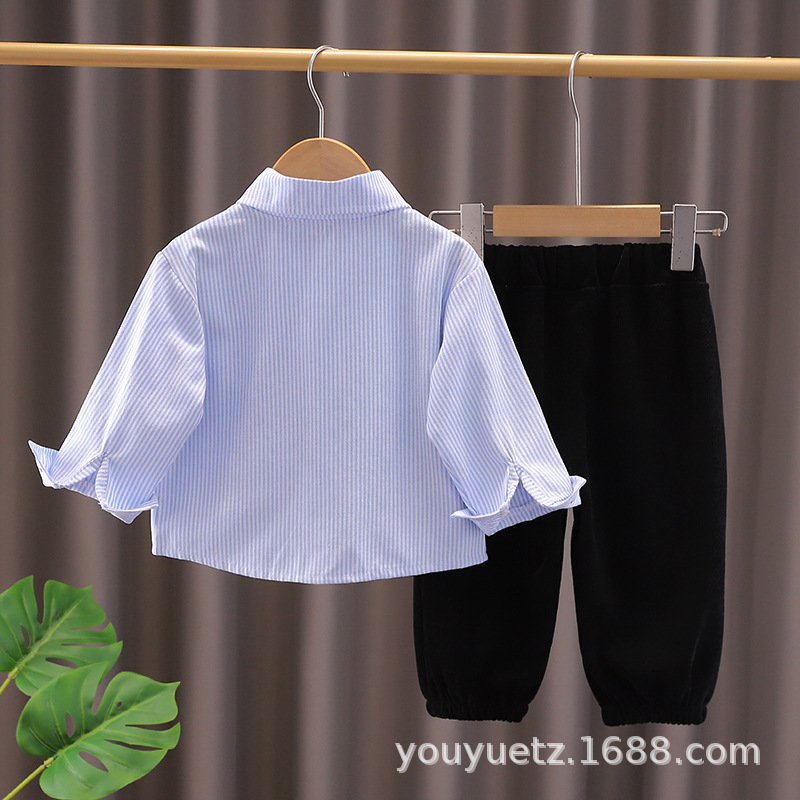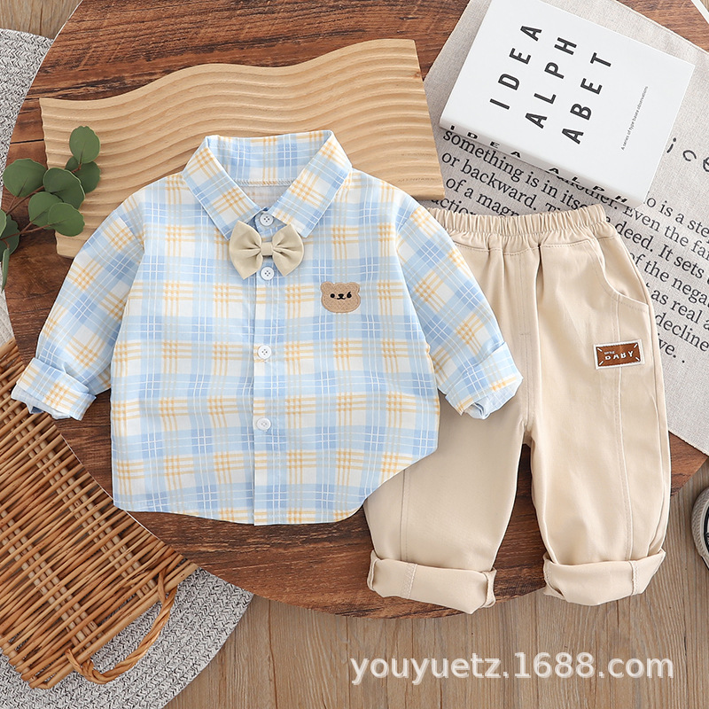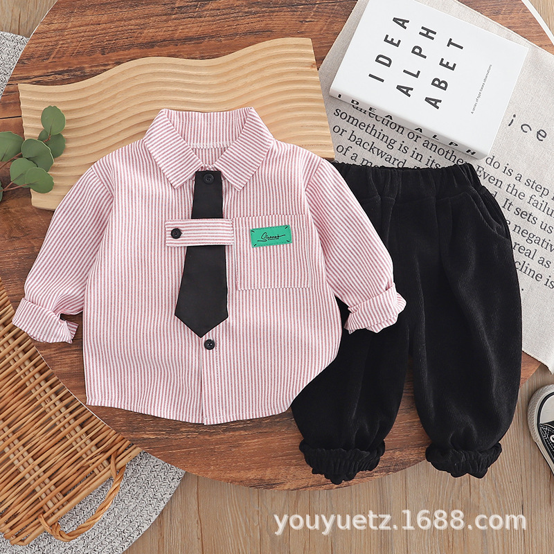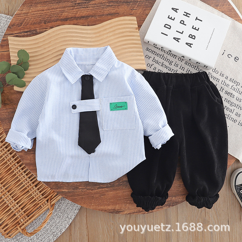 소년 봄, 가을 정장 2025 새로운 잘 생긴 아기 넥타이 긴팔 셔츠 가을 의류 아동 의류 유행스토어 가기