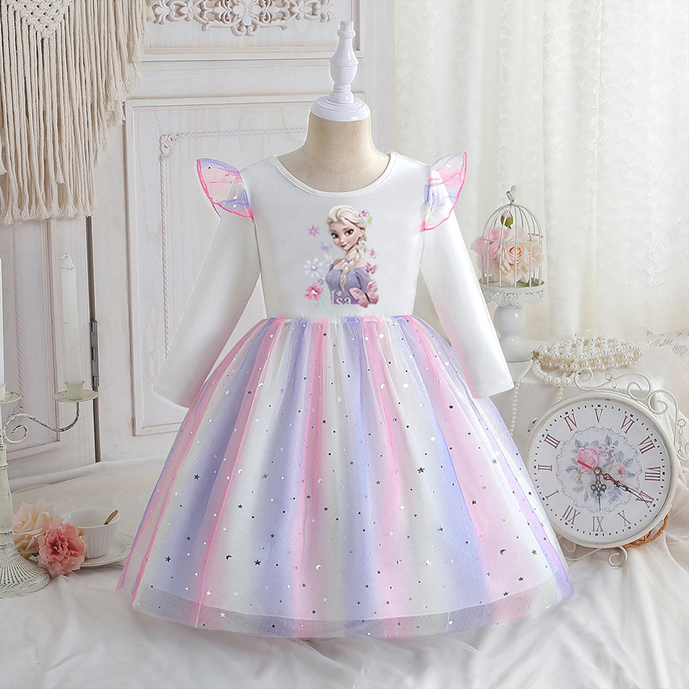 여자 드레스 긴팔 봄, 가을 아동복 새로운 여자 엘사 공주 드레스 어린이 드레스 겨울왕국 스타일