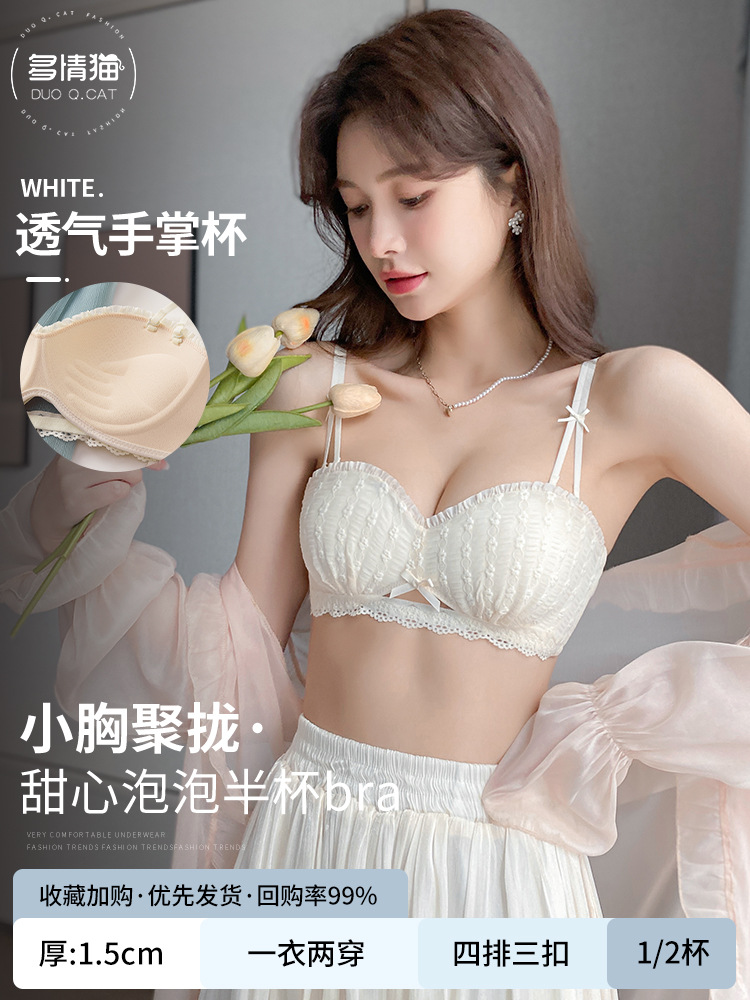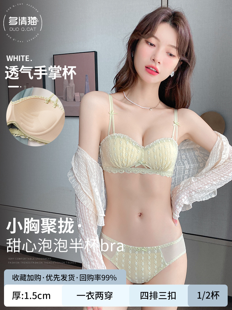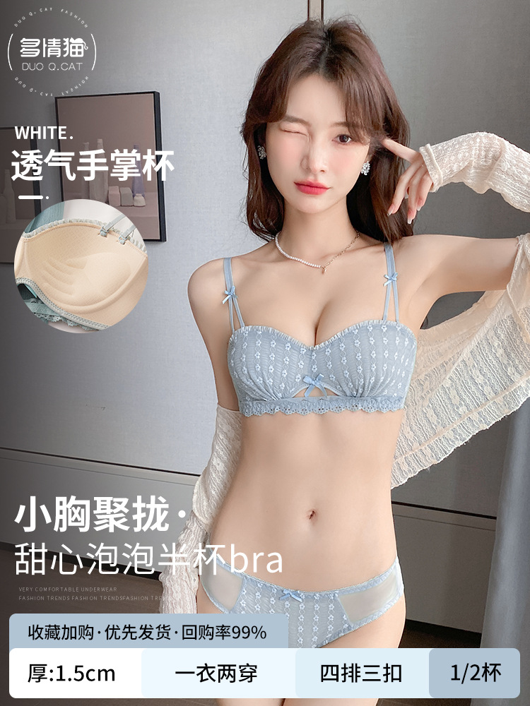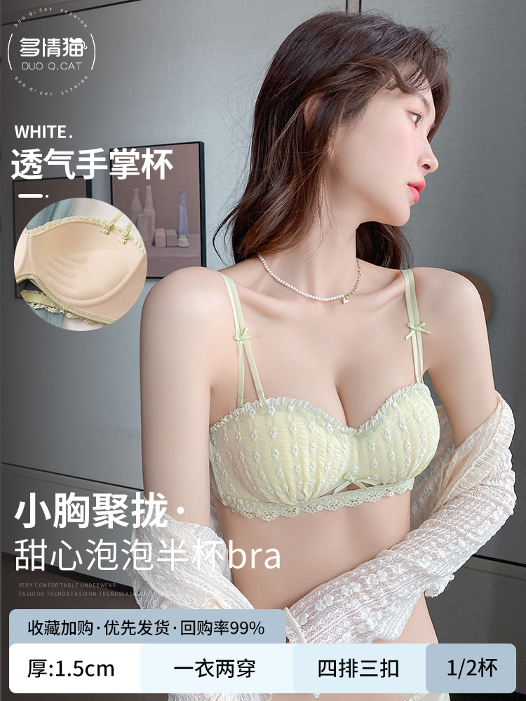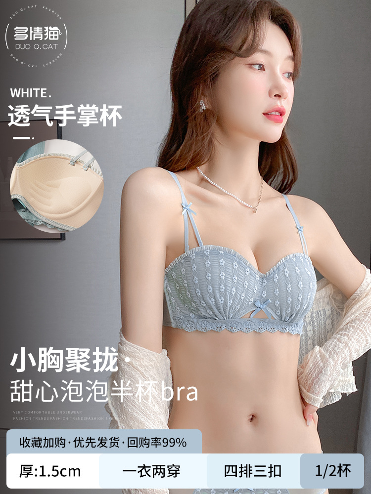가슴이 작은 소녀들을 위한 반컵 속옷, 푸쉬업, 다정한 고양이, 가슴이 납작한 여름용 특수 스트랩리스 노와이어 브라 세트스토어 가기