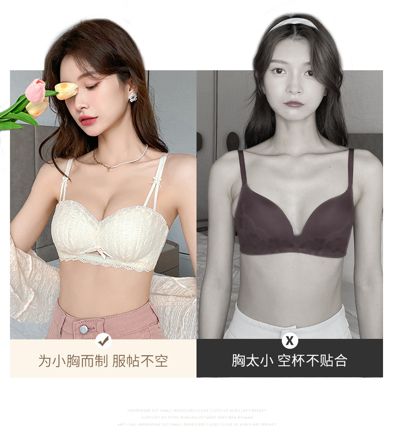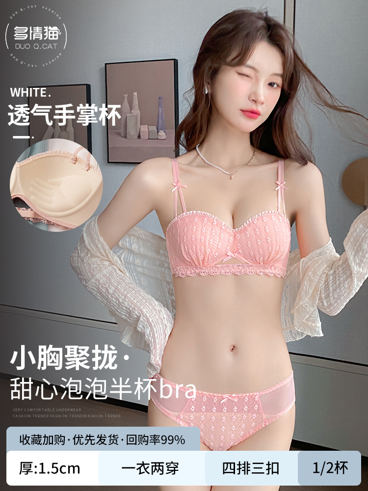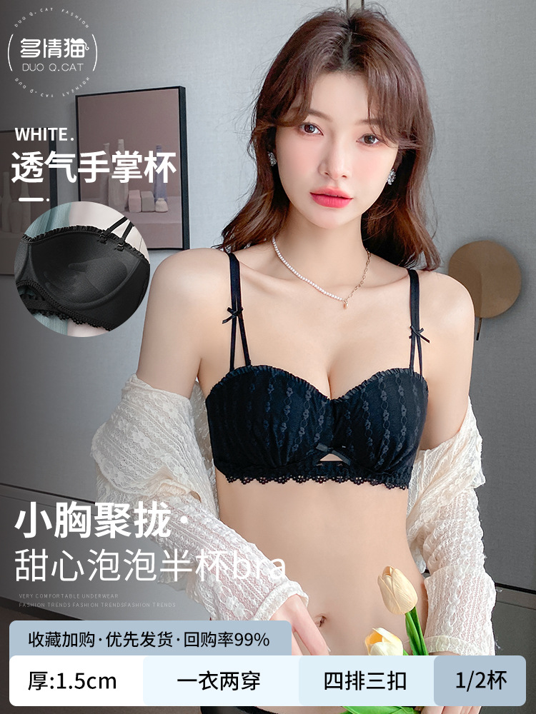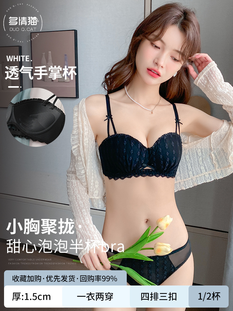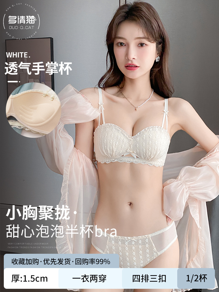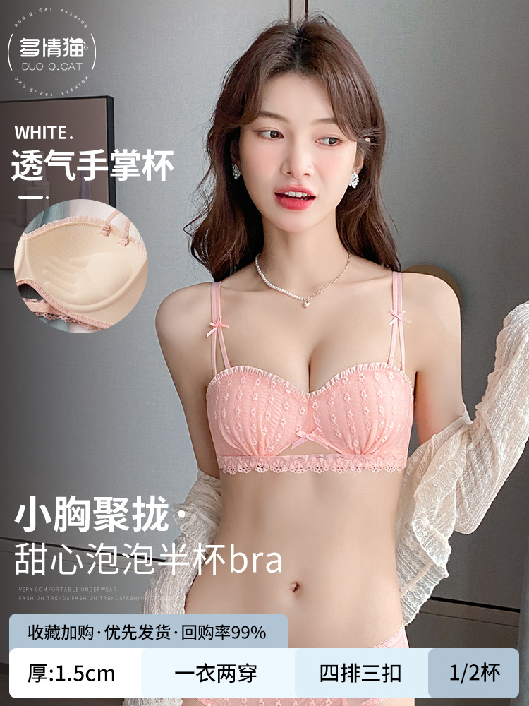 가슴이 작은 소녀들을 위한 반컵 속옷, 푸쉬업, 다정한 고양이, 가슴이 납작한 여름용 특수 스트랩리스 노와이어 브라 세트스토어 가기