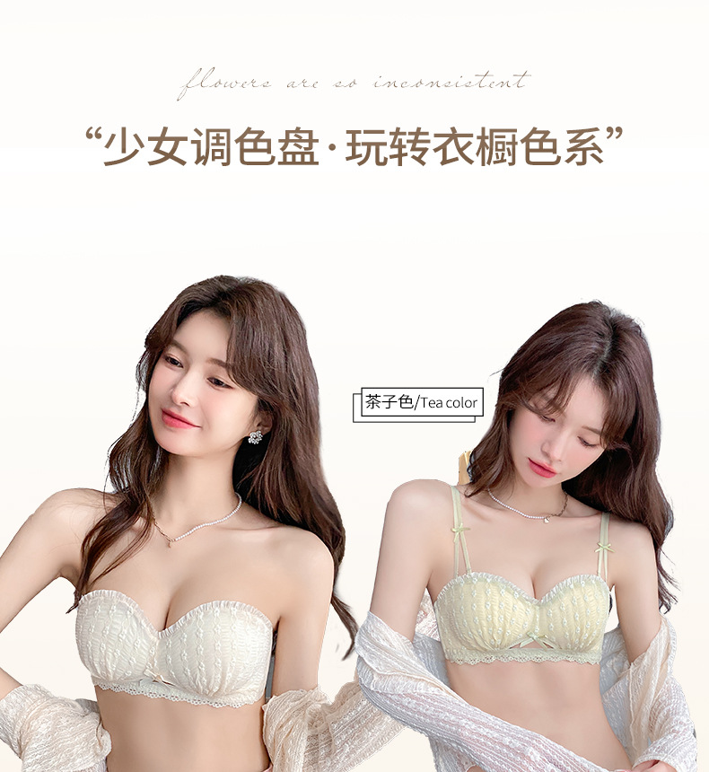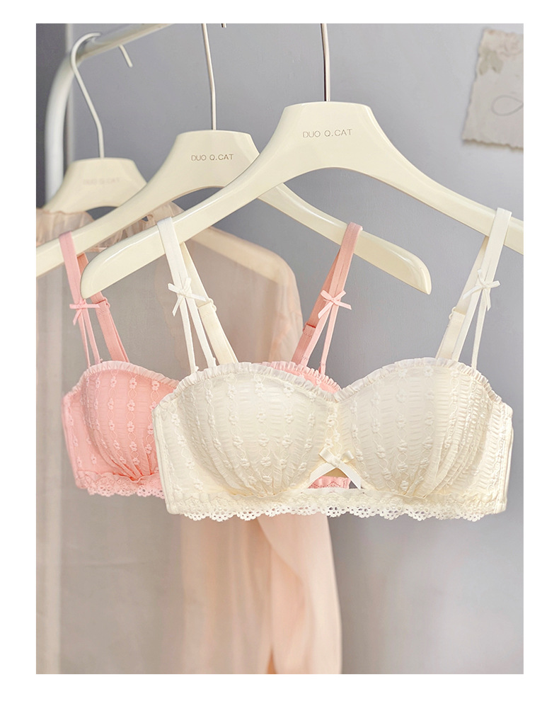 가슴이 작은 소녀들을 위한 반컵 속옷, 푸쉬업, 다정한 고양이, 가슴이 납작한 여름용 특수 스트랩리스 노와이어 브라 세트