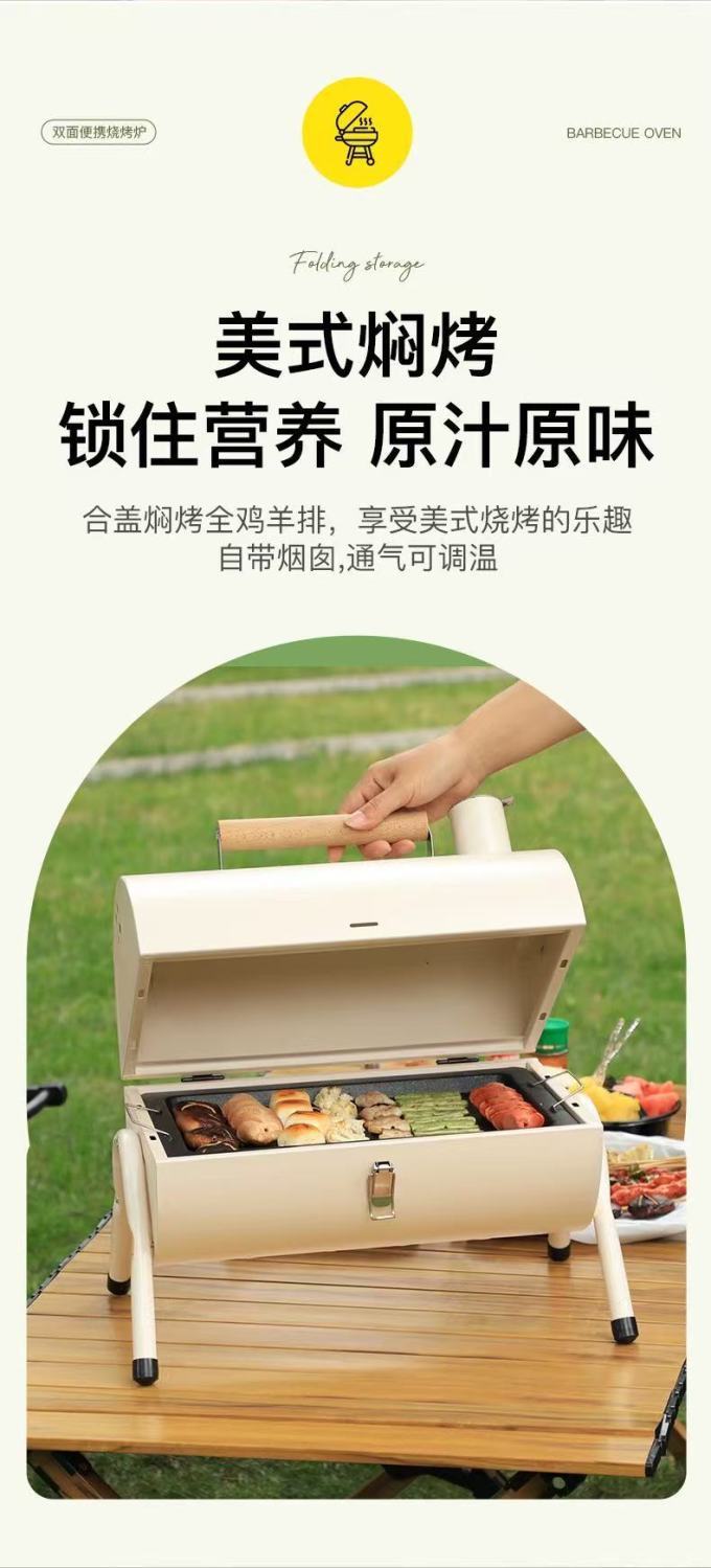 바베큐 그릴 가정용 그릴 야외 다기능 바베큐 굴뚝 스토브 숯 양면 캠핑 휴대용스토어 가기