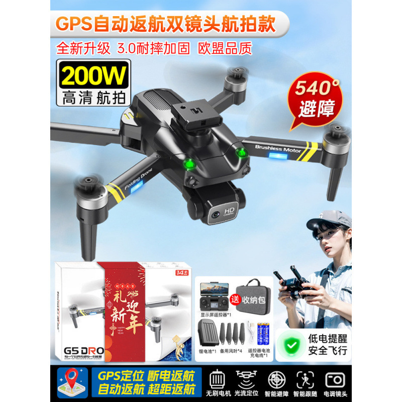 • [신년선물카드] [대용량 배터리] 7레벨 방풍/대형/브러시리스 GPS 전문가급 [GPS 자동 복귀 + 레이저 장애물 회피] 8K/듀얼 카메라