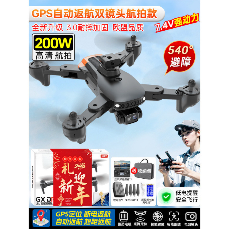 • [신년선물포장] 1호 방풍/GPS 4중 포지셔닝 +540 ° 장애물 회피 [8K HD 듀얼 카메라 + 광학 흐름 안정화 + 공중 고정 높이] 블랙