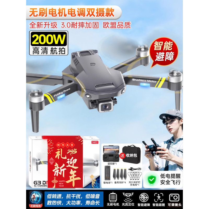 • [선물박스 포장] 브러시리스 전문가급 [지능형 장애물 회피] 8K/듀얼 카메라 [브러시리스 모터 + 광학 흐름 안정화/원클릭 복귀]