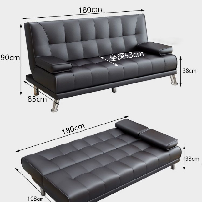 소파 베드 현대식 단단한 나무 소파 베드 접이식 작은 아파트 거실 더블 다기능 이중 목적 사무실 3인용