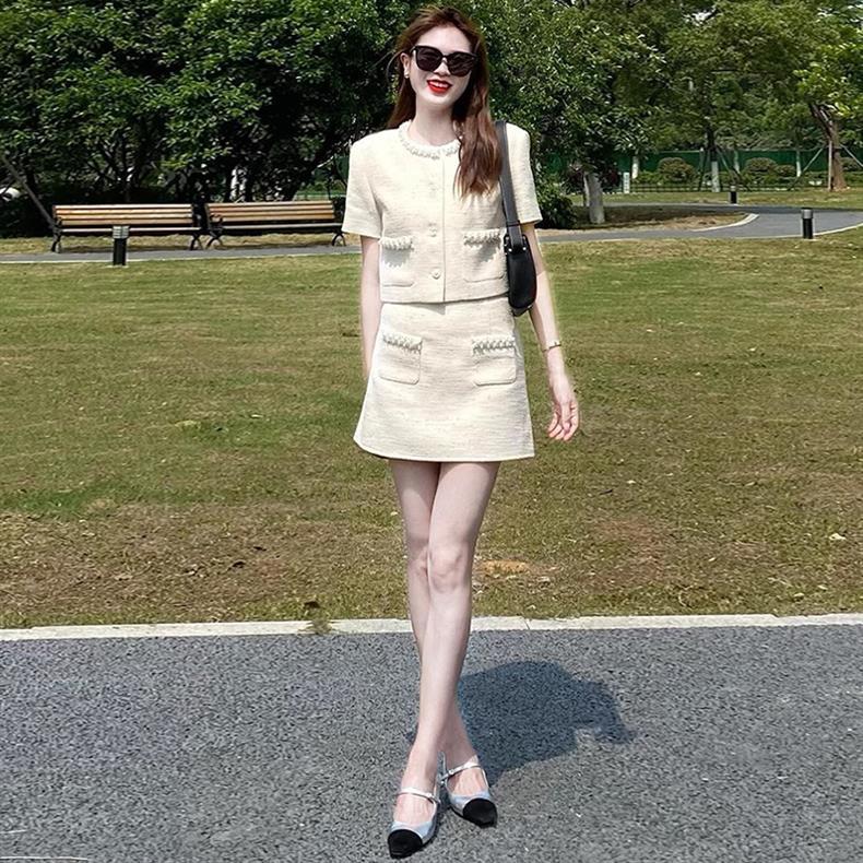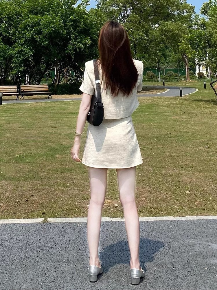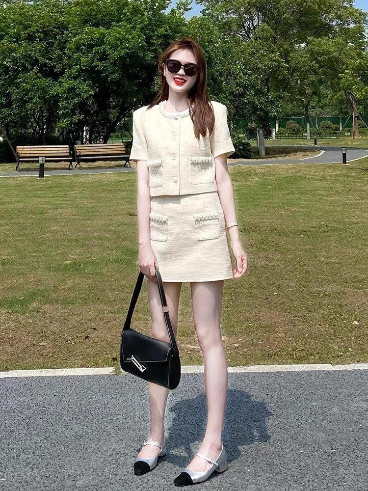 심천 Nanyou 패션 스커트 여성 2025 여름 새로운 프랑스 스타일 슬림 반팔 탑과 스커트 투피스 세트스토어 가기