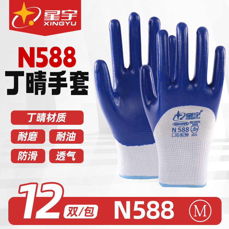 Xingyu N588 니트릴 반침수 노동 보호 장갑 내마모성, 내유성, 산 및 알칼리 방지 장갑 산업용 작업 절연 장갑스토어 가기