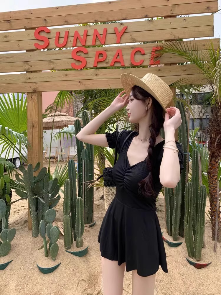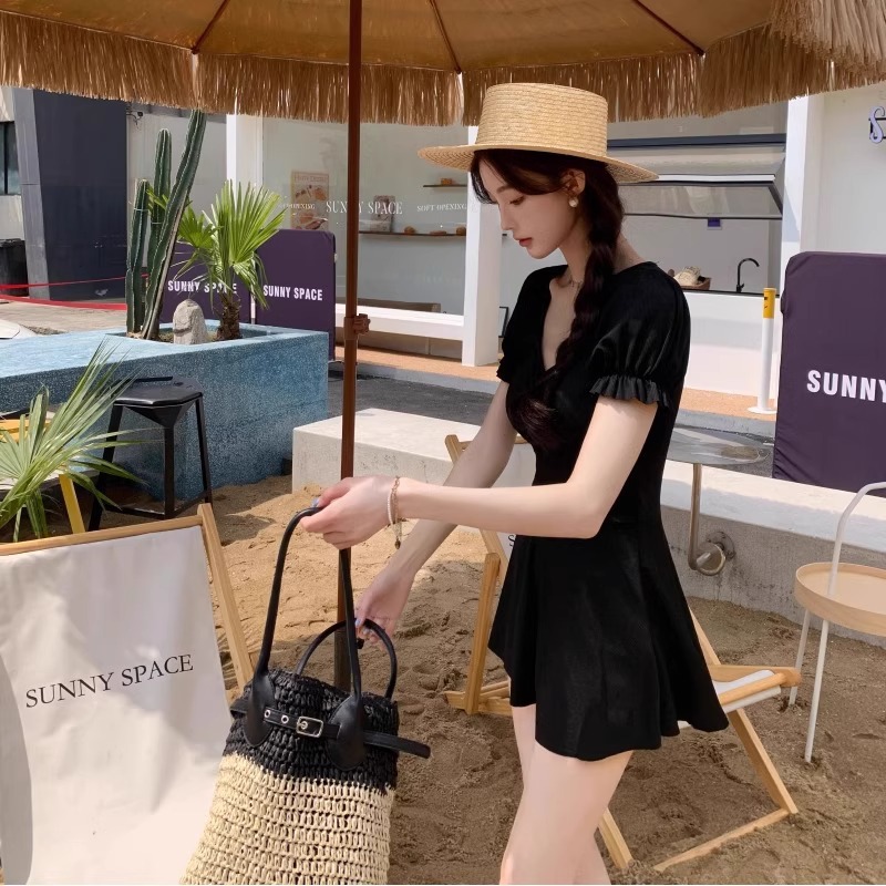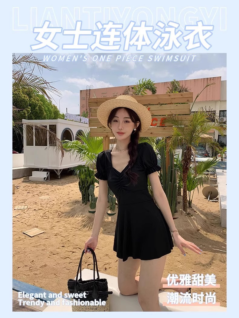 여성용 작고 상큼한 원피스 수영복, 보수적이고 고급스럽고 슬림한 허리와 배를 커버하는 여름 스타일 섹시한 학생 온천 수영복스토어 가기