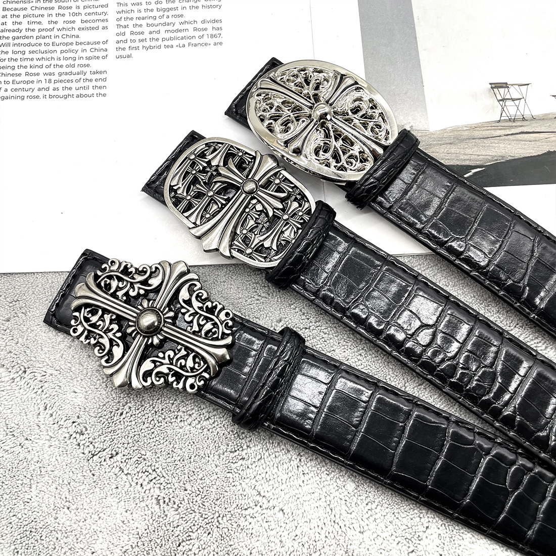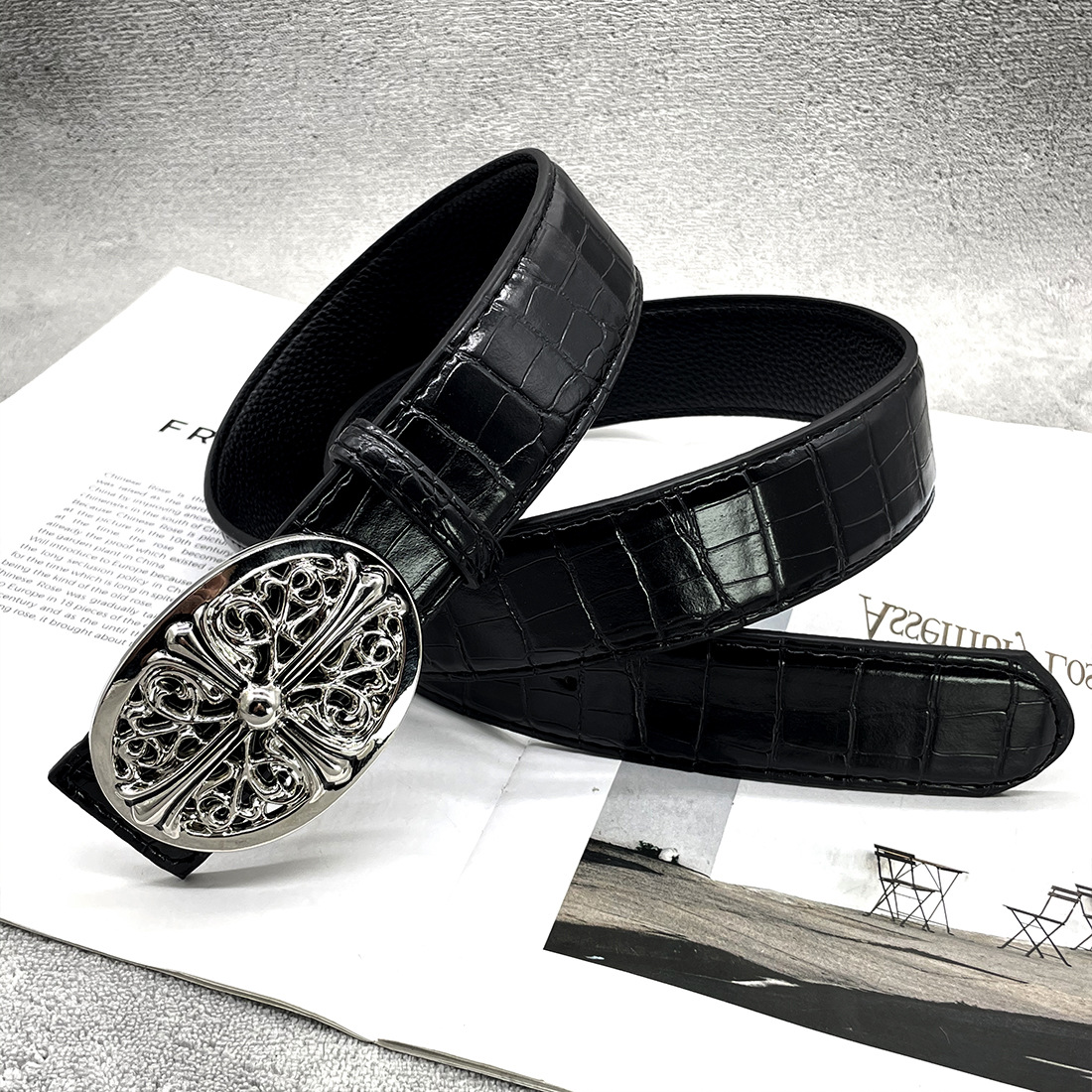 Crowe CH 악어 패턴 크로스 클래식 덩굴 스타 벨트 남성용 청바지 벨트 복고풍 트렌디 패션