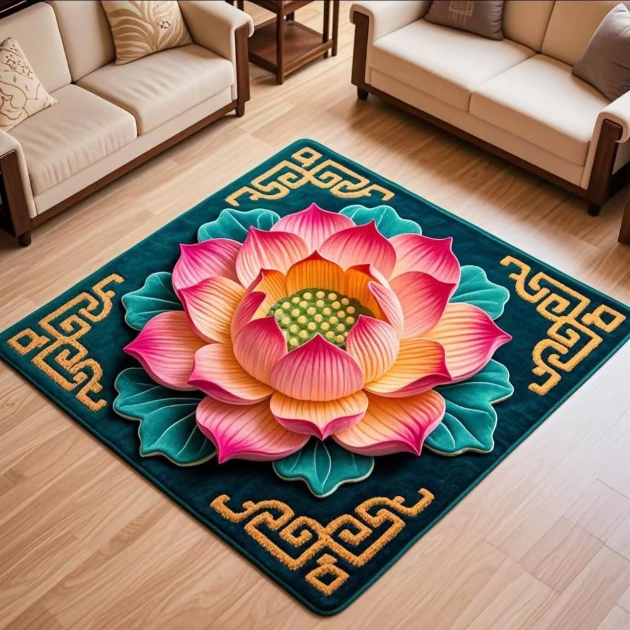 연꽃 카펫은 물을 흡수하고 미끄럼 방지 기능이 있으며 관리가 쉽고 청소가 쉽습니다. 중국식 사각형 크리스탈 벨벳 바닥 매트입니다.스토어 가기