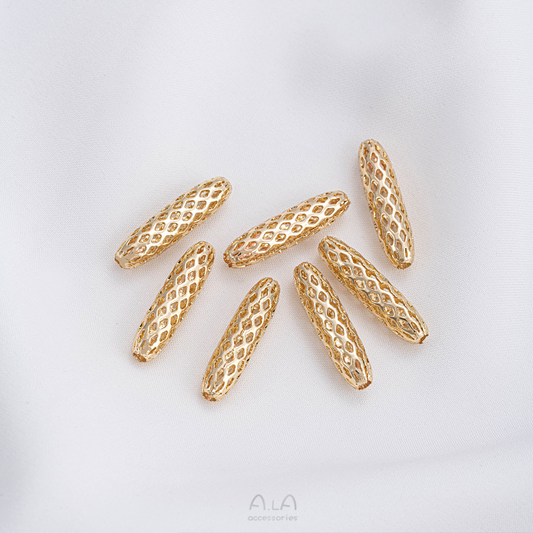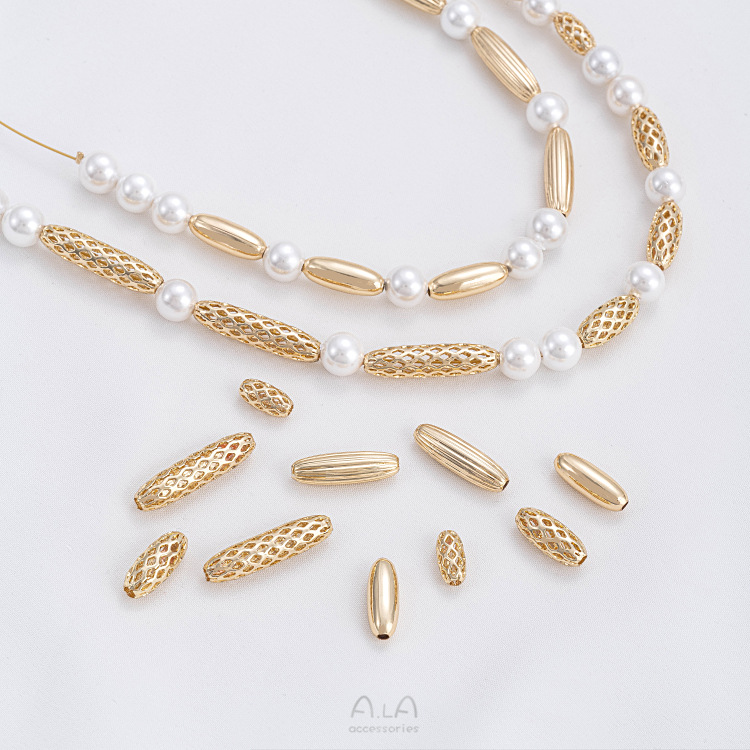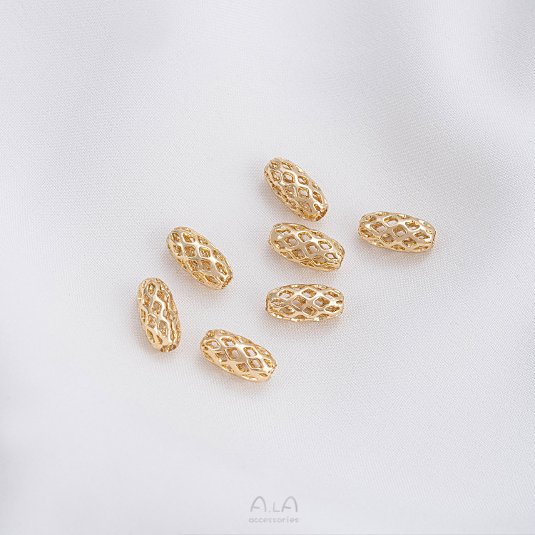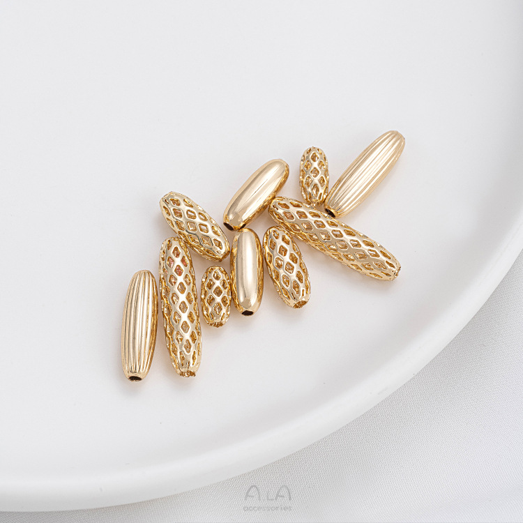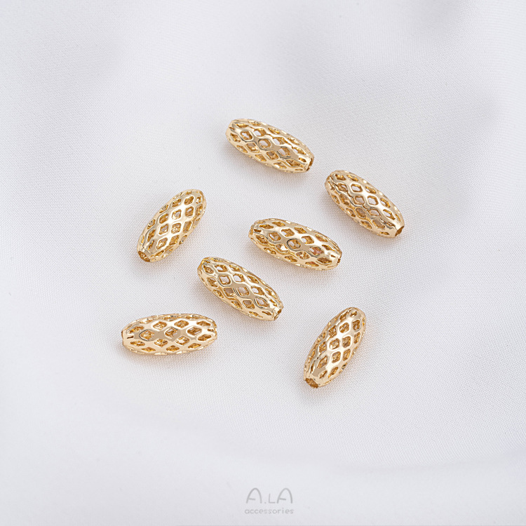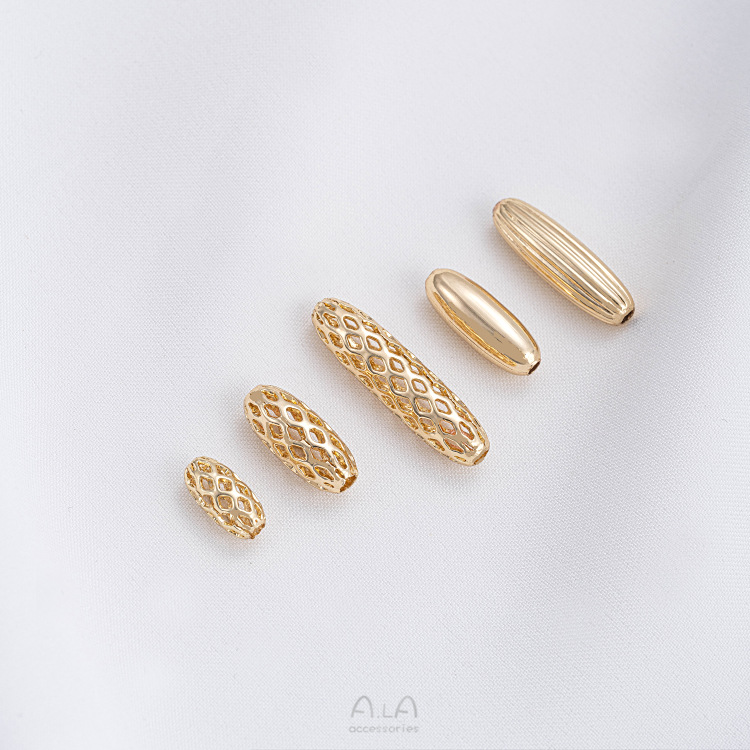 색상 보존 14K 금도금 복고풍 중공 타원형 긴 쌀 비즈 수제 귀걸이 쥬얼리 diy 팔찌 목걸이 액세서리