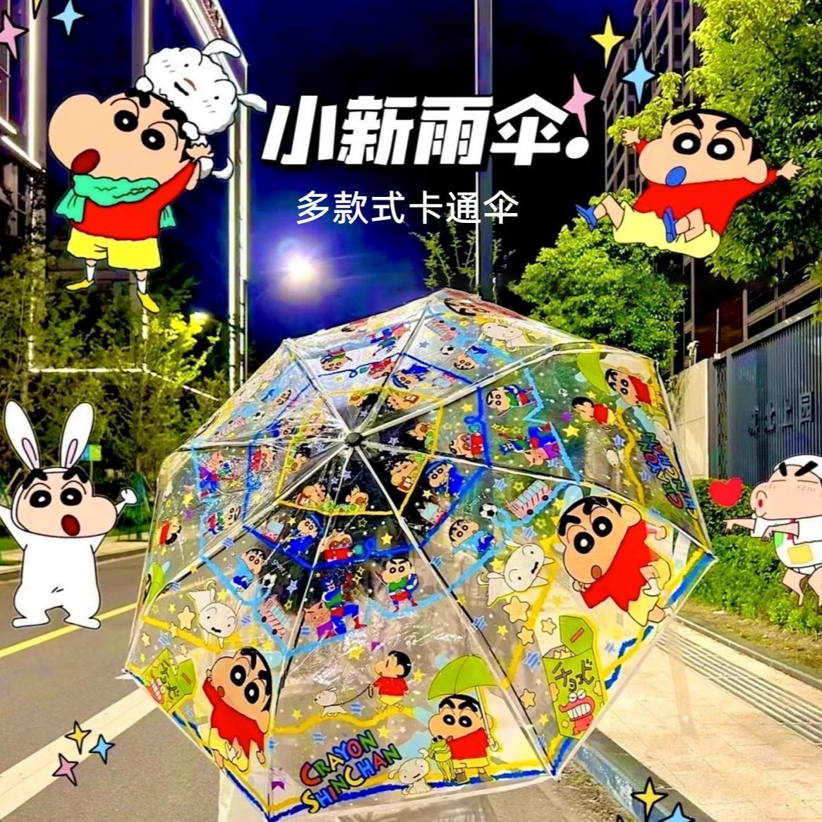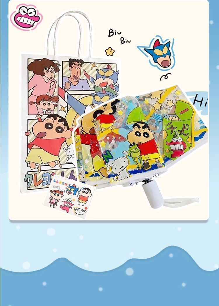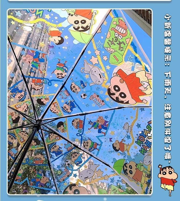 크레용신짱 투명 우산, 고급스러운 외관, 자동 개폐, 대형, 두꺼운 어린이 학생용 만화 접이식 우산 도매스토어 가기