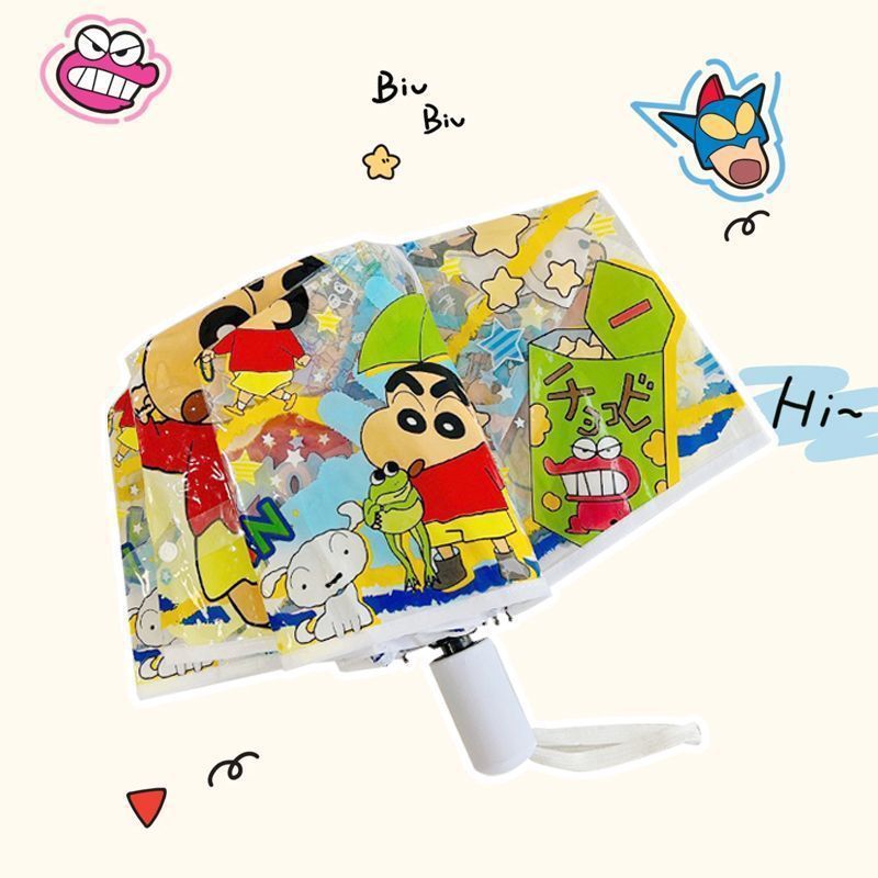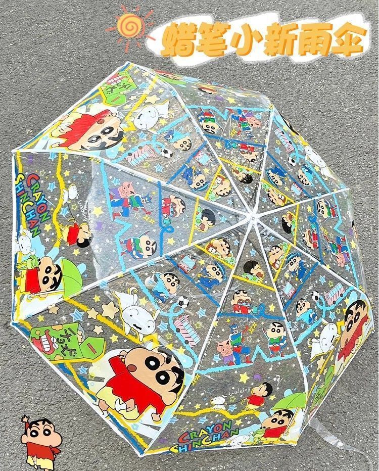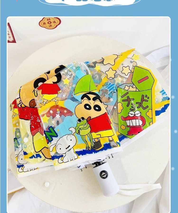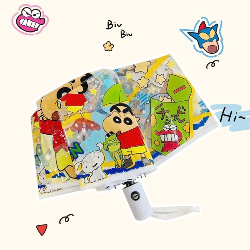 크레용신짱 투명 우산, 고급스러운 외관, 자동 개폐, 대형, 두꺼운 어린이 학생용 만화 접이식 우산 도매