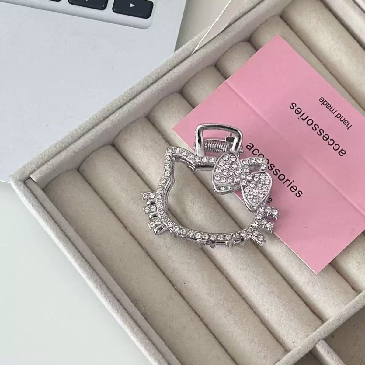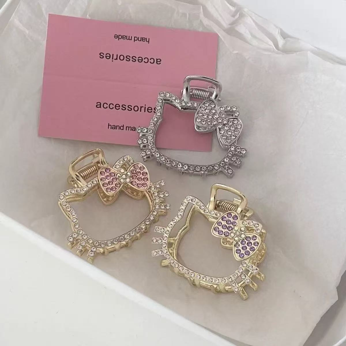 귀여운 라인스톤 KT 고양이 클립 여성용 머리핀 고양이 클립 패션 틈새 달콤한 상어 클립 헤어 액세서리 머리 장식 액세서리스토어 가기
