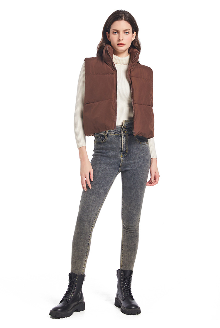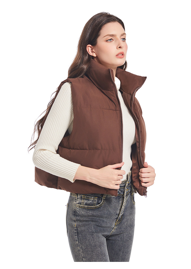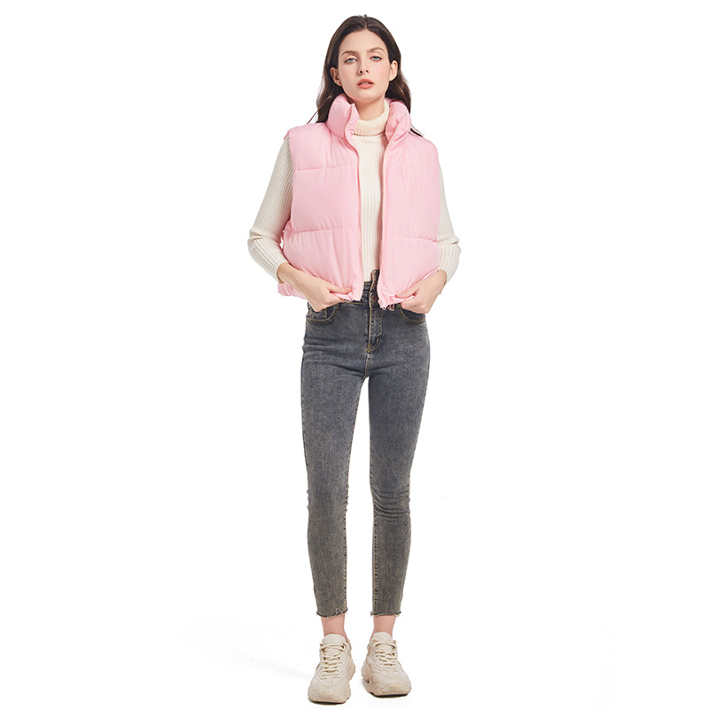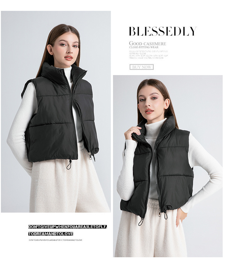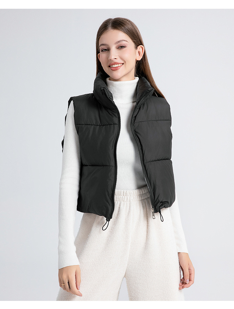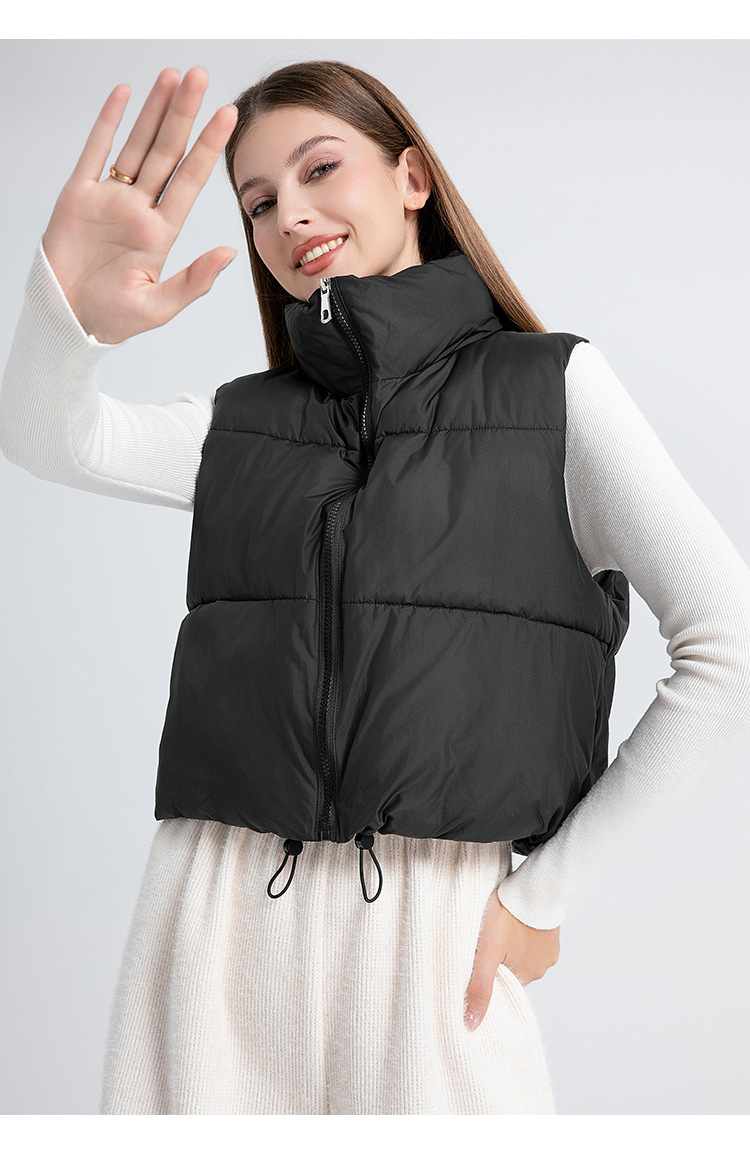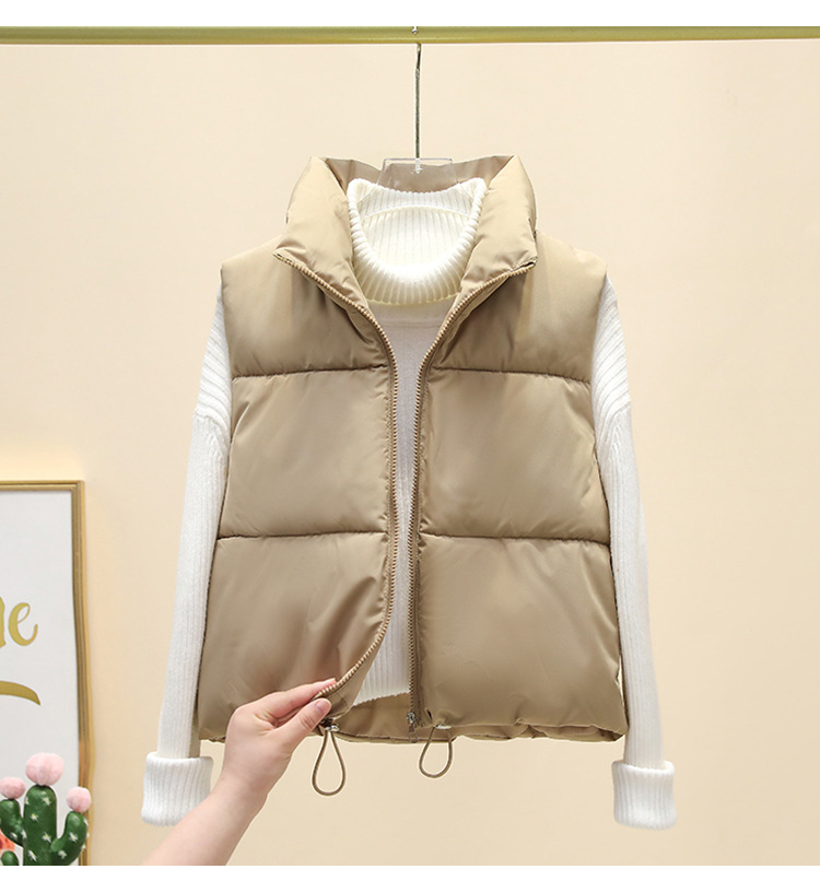 2025 새로운 겨울 코튼 조끼 여성 다목적 느슨한 패션 한국 스타일 슬림 간단한 스탠드 칼라 짧은 조끼 재킷