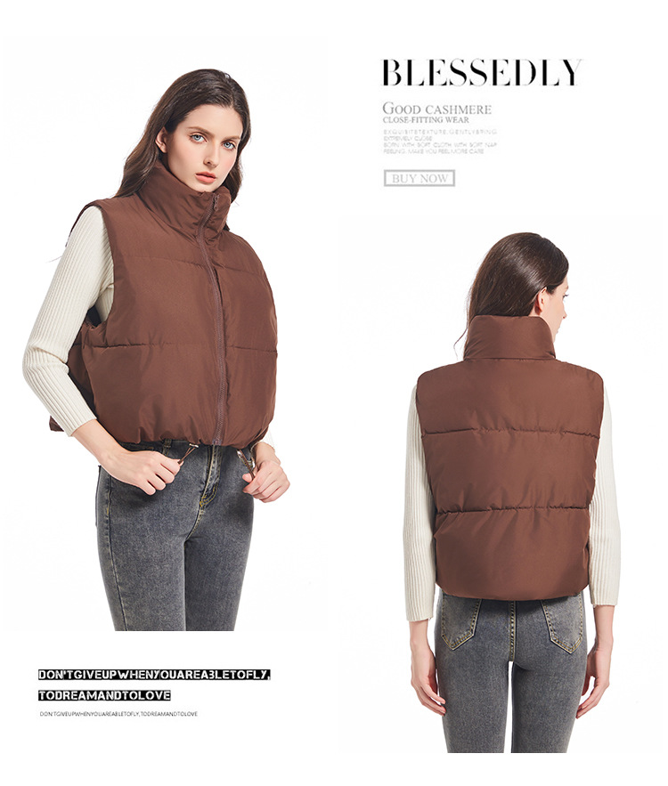 2025 새로운 겨울 코튼 조끼 여성 다목적 느슨한 패션 한국 스타일 슬림 간단한 스탠드 칼라 짧은 조끼 재킷스토어 가기