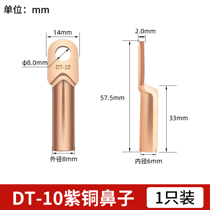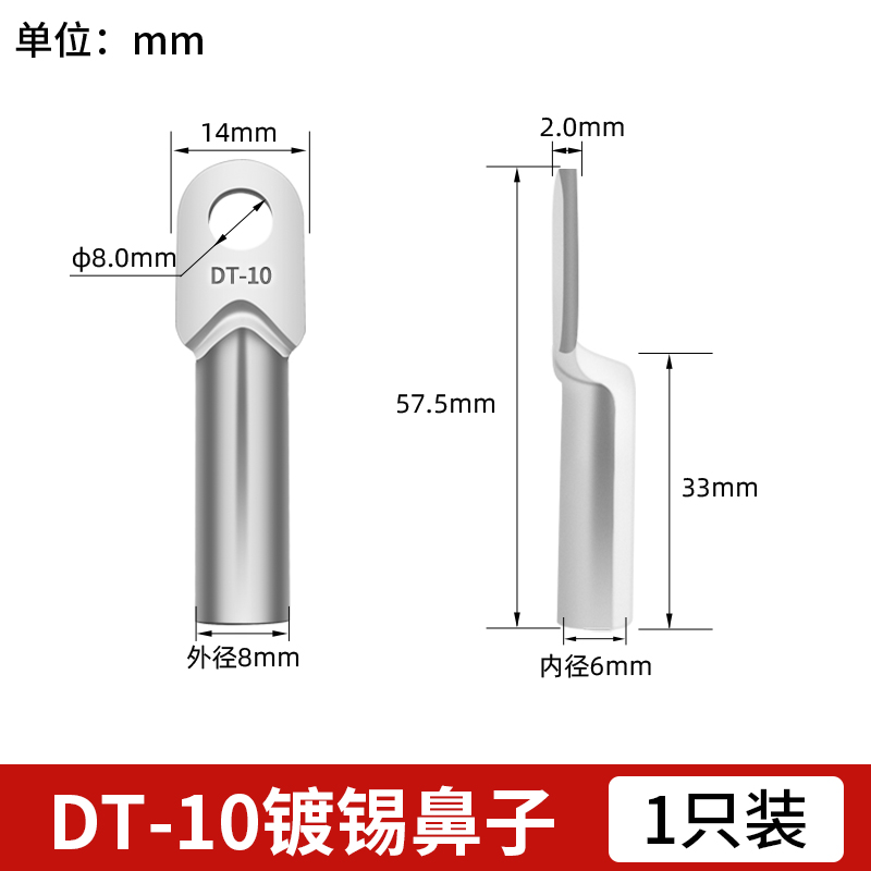 DT 구리 DT 주석 도금 구리 노즈 구리 배선 노즈 구리 튜브 노즈 배선 단자 DT10-400MM 배선 단자스토어 가기