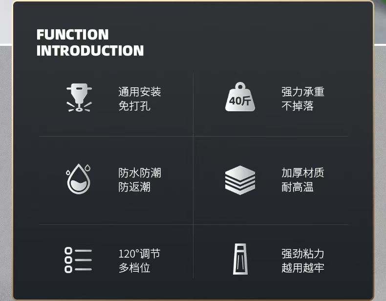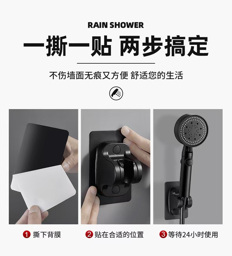 구멍이 없는 샤워기 브래킷, 샤워 헤드, 가정용 고정 샤워 헤드, 레인 샤워 헤드, 조절 가능한 베이스