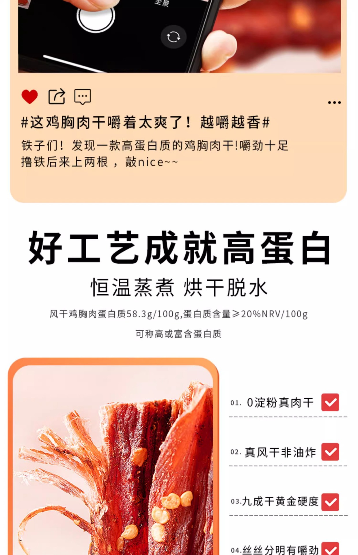 건조 닭고기 스트립, 바로 먹을 수 있는 닭가슴살 스트립, 고단백 피트니스 간식, 저칼로리 지방 대체 식사, 바로 먹을 수 있는 간식스토어 가기