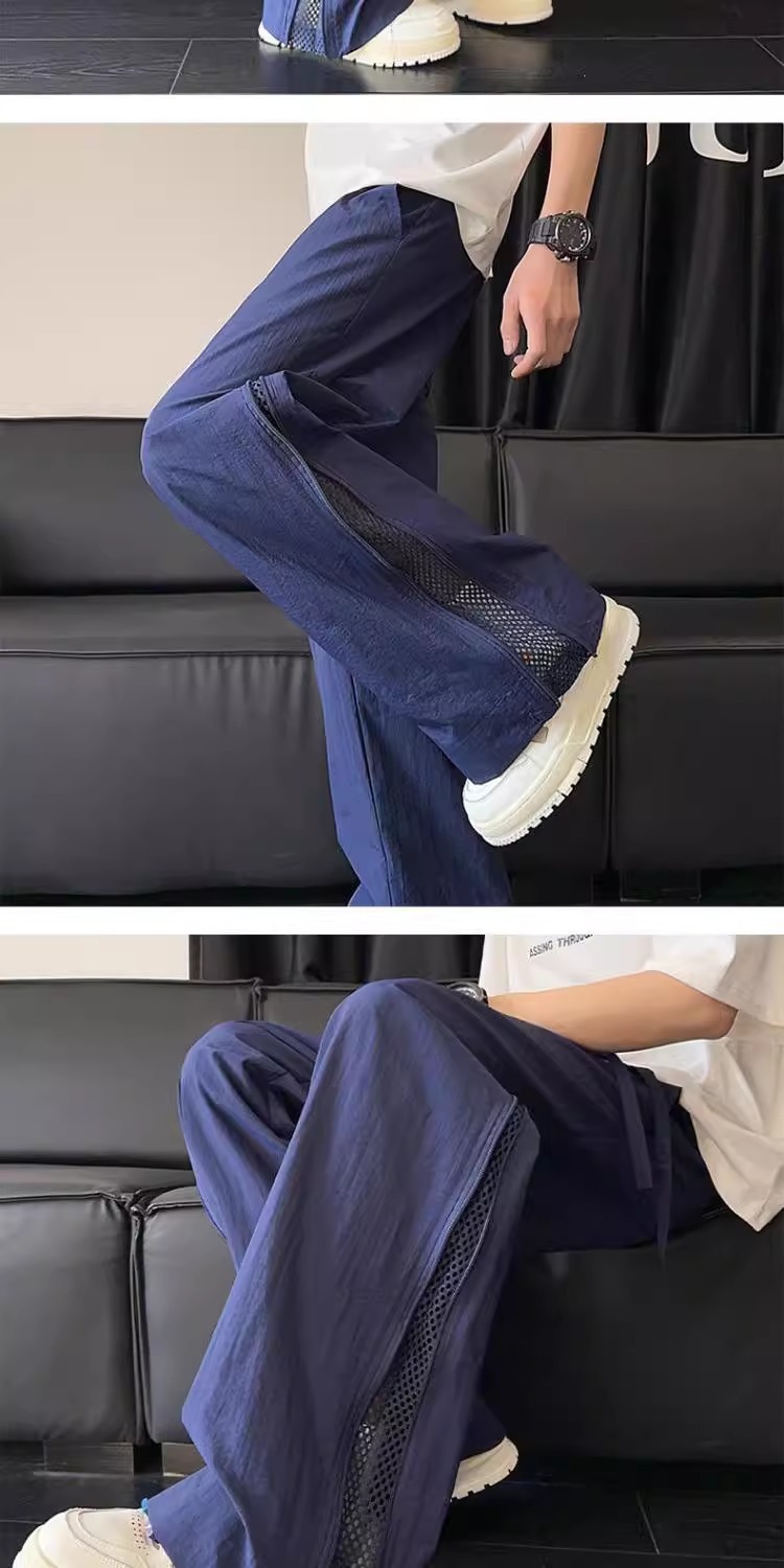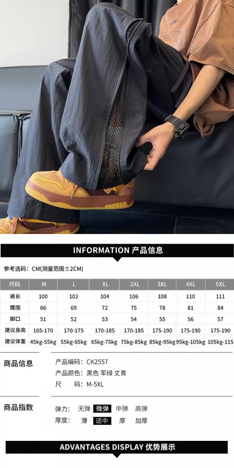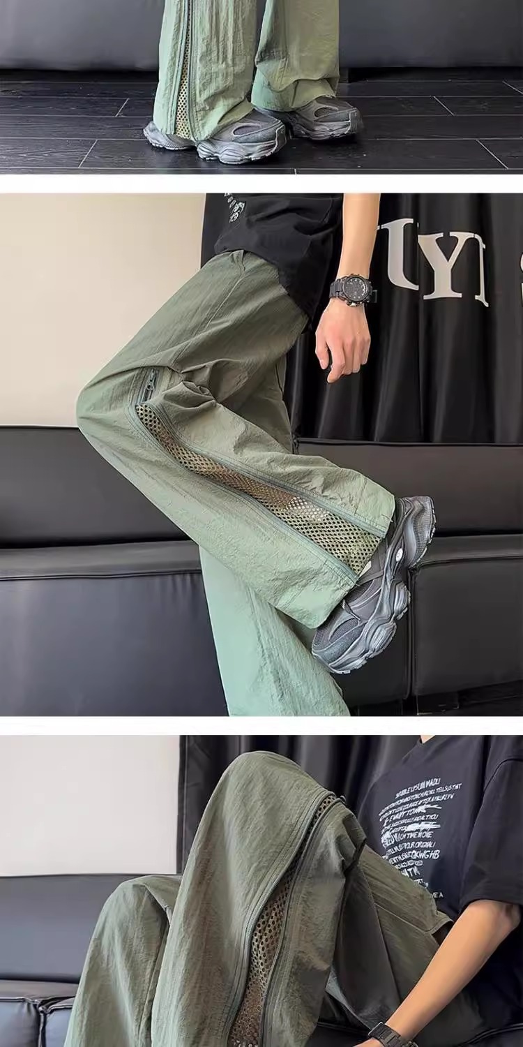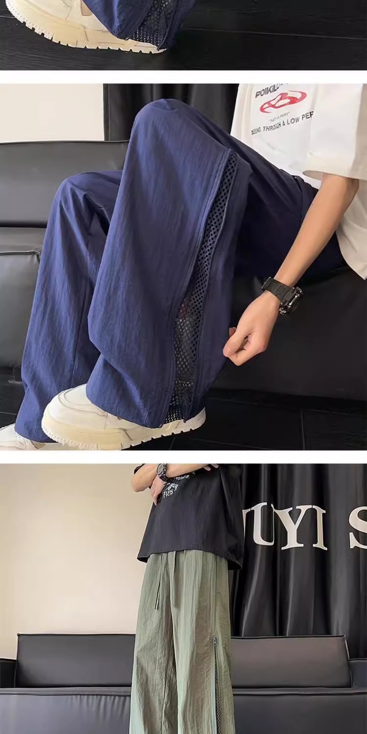 2025 슈퍼 핫 사이드 지퍼 메쉬 통기성 스포츠 바지 남성 여름 얇은 얼음 실크 태양 보호 바지 등산 작업복