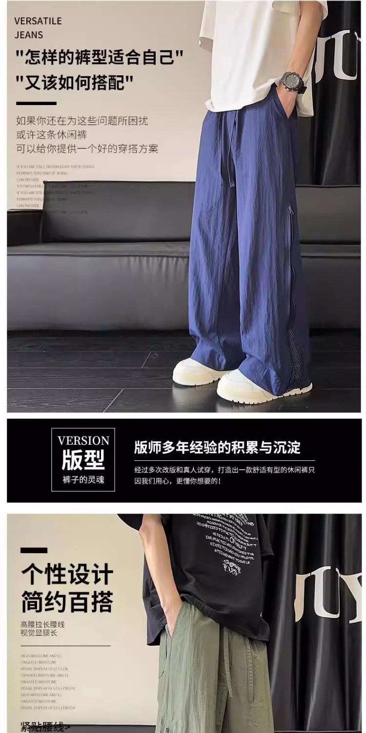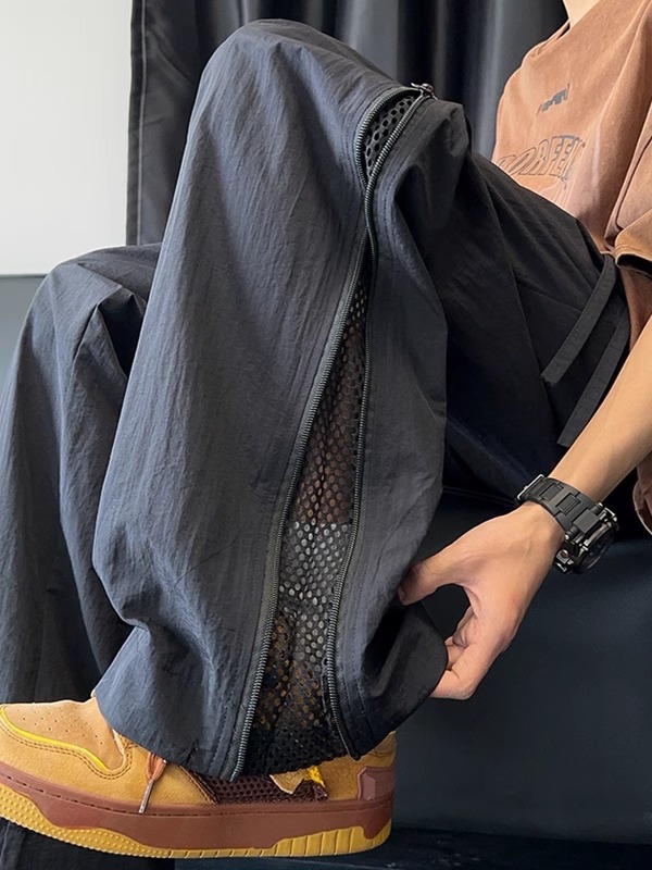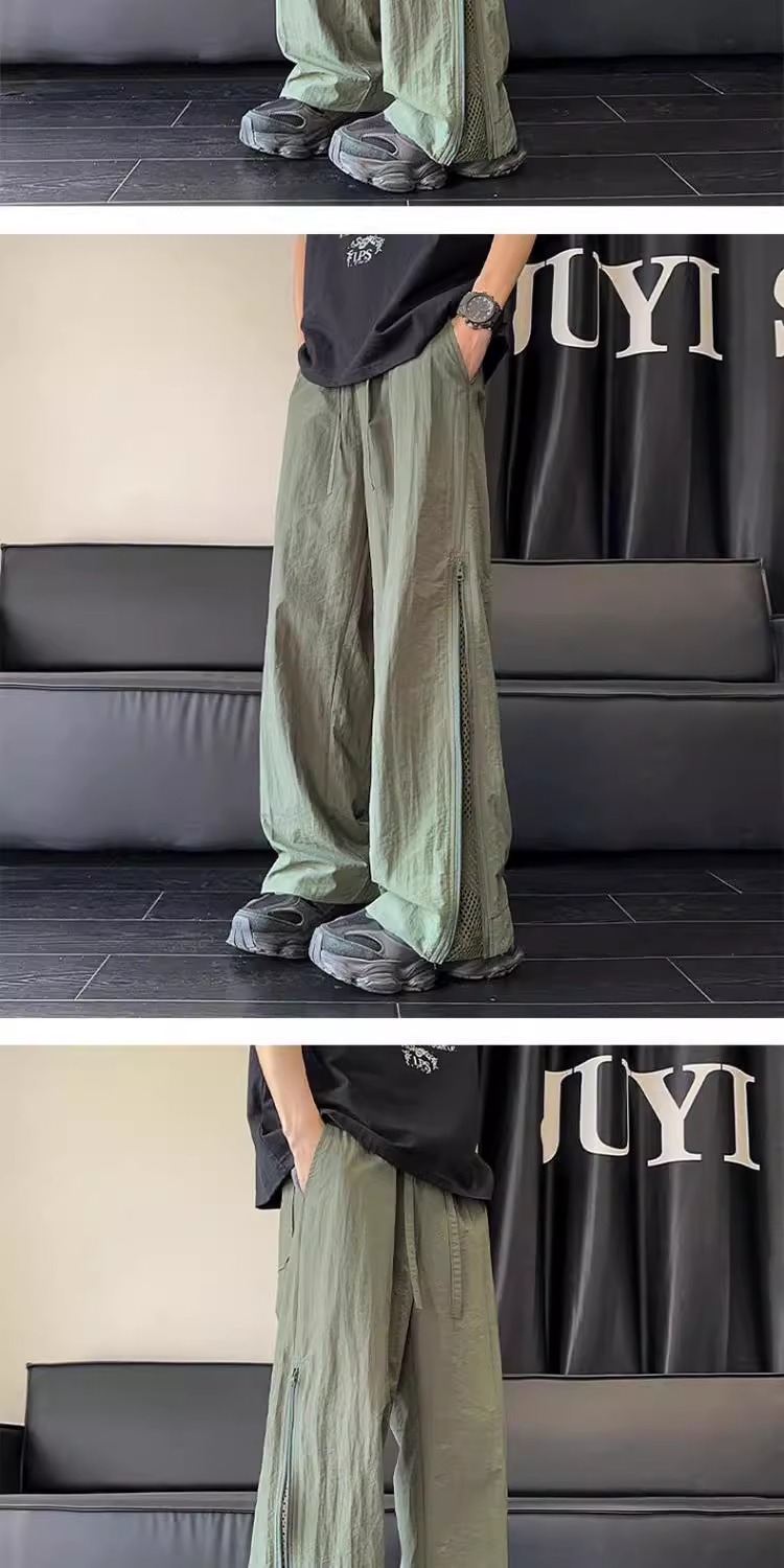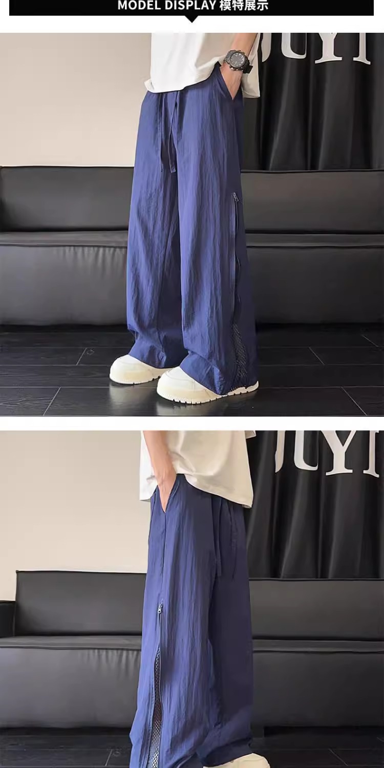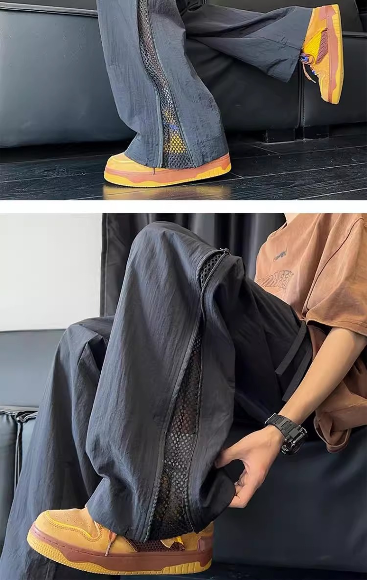 2025 슈퍼 핫 사이드 지퍼 메쉬 통기성 스포츠 바지 남성 여름 얇은 얼음 실크 태양 보호 바지 등산 작업복