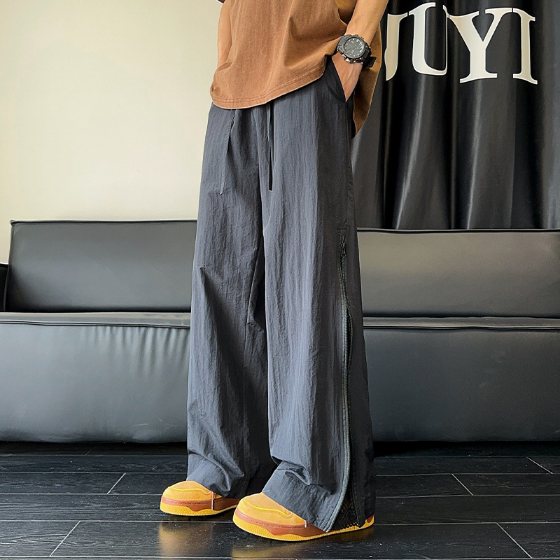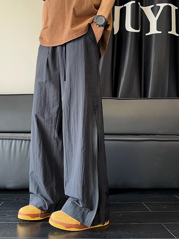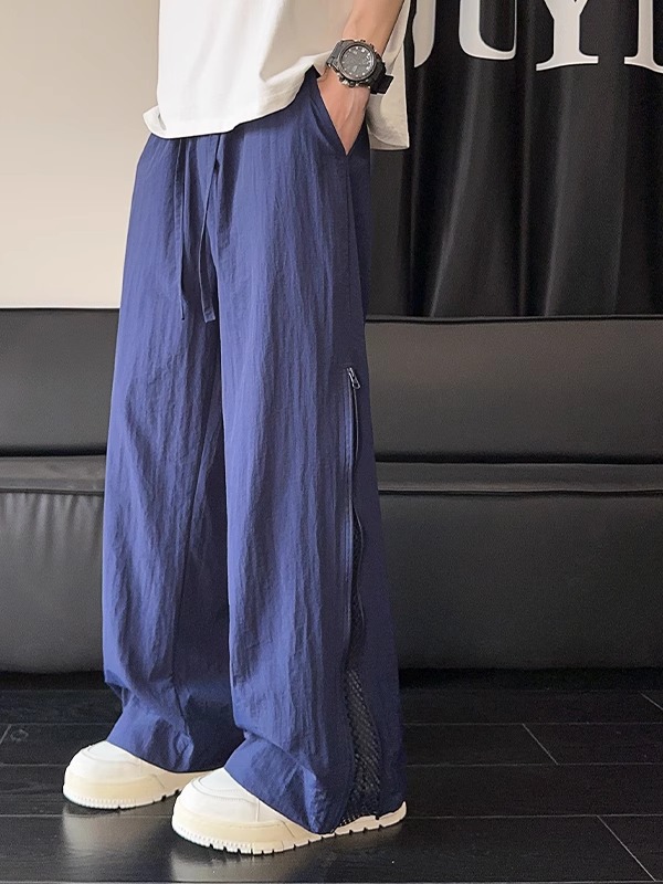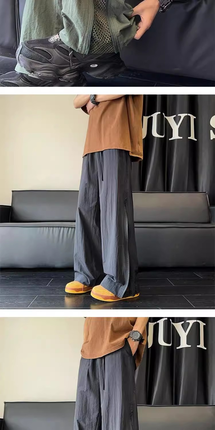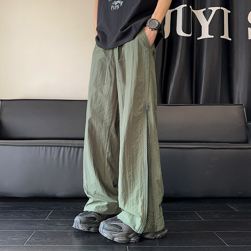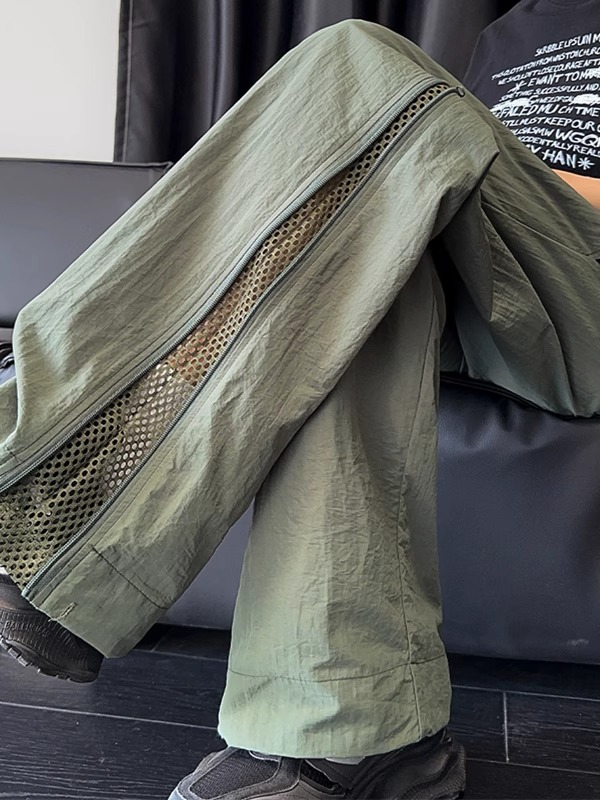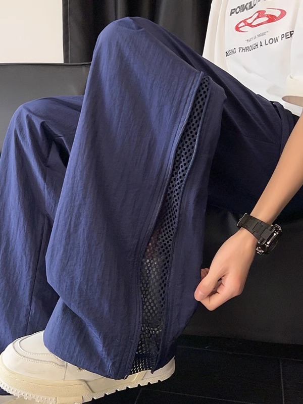 2025 슈퍼 핫 사이드 지퍼 메쉬 통기성 스포츠 바지 남성 여름 얇은 얼음 실크 태양 보호 바지 등산 작업복