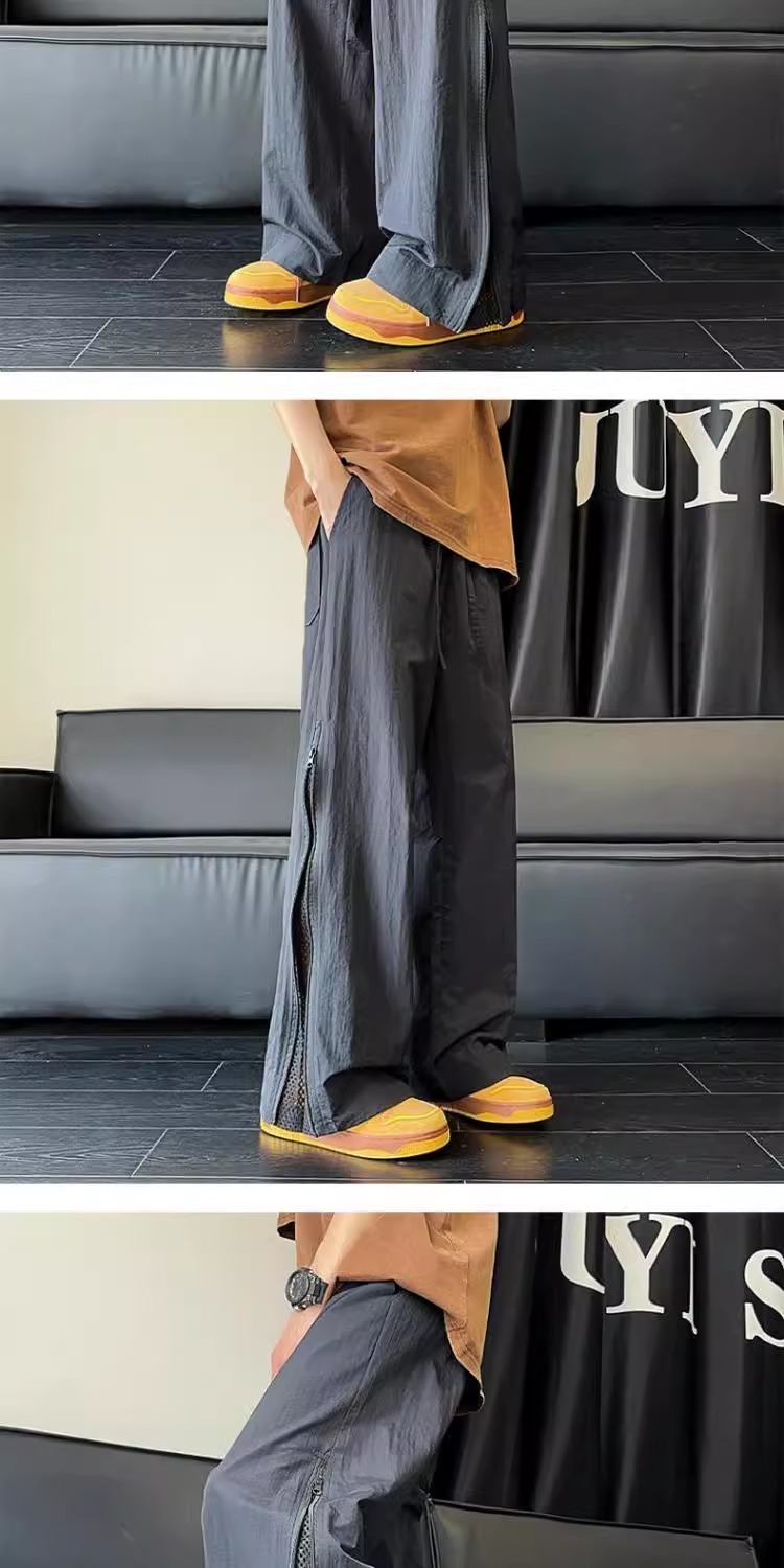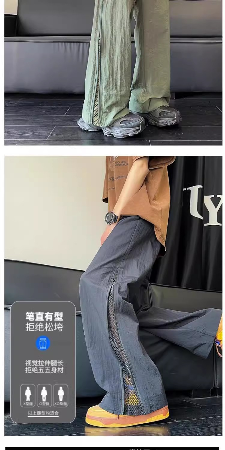 2025 슈퍼 핫 사이드 지퍼 메쉬 통기성 스포츠 바지 남성 여름 얇은 얼음 실크 태양 보호 바지 등산 작업복스토어 가기